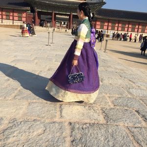 年齢に関係なく、チマチョゴリをきて楽しく観光出来ました。たくさんある中で選べるので、若くなくても大丈夫でした。案内をしてくれた、イさんの説明もわかりやすく、面白かったです❗