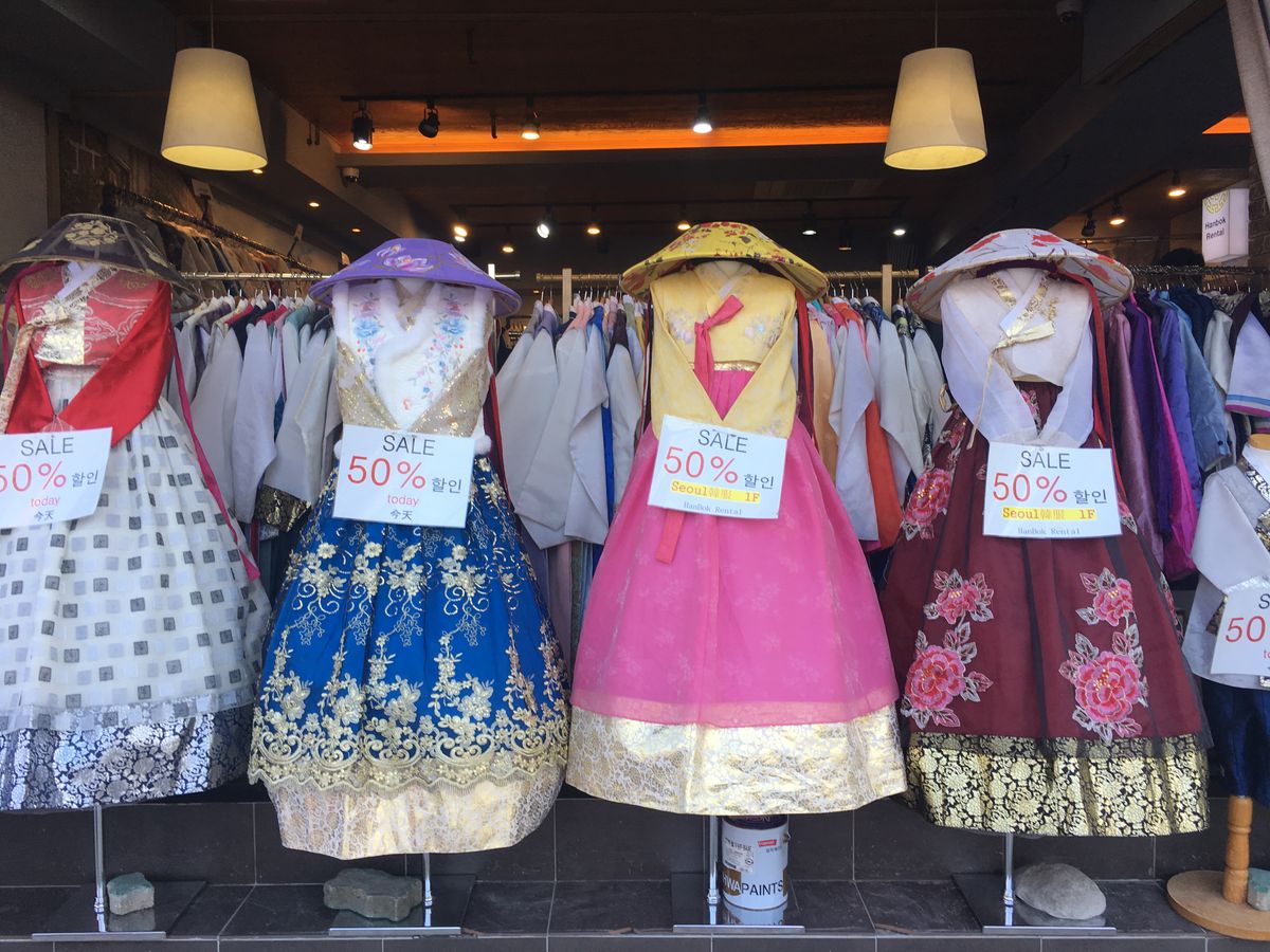 チマチョゴリのレンタルショップでは順番ではなく着たい服が決まったら自分から店員に声をかけなくてはならないシステムで、まず店員が誰だかわからない 店が激混みで新しい客が次々と入ってくるので着替えは断念しました