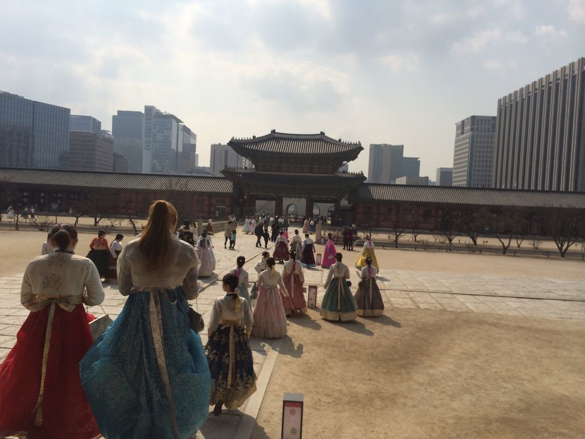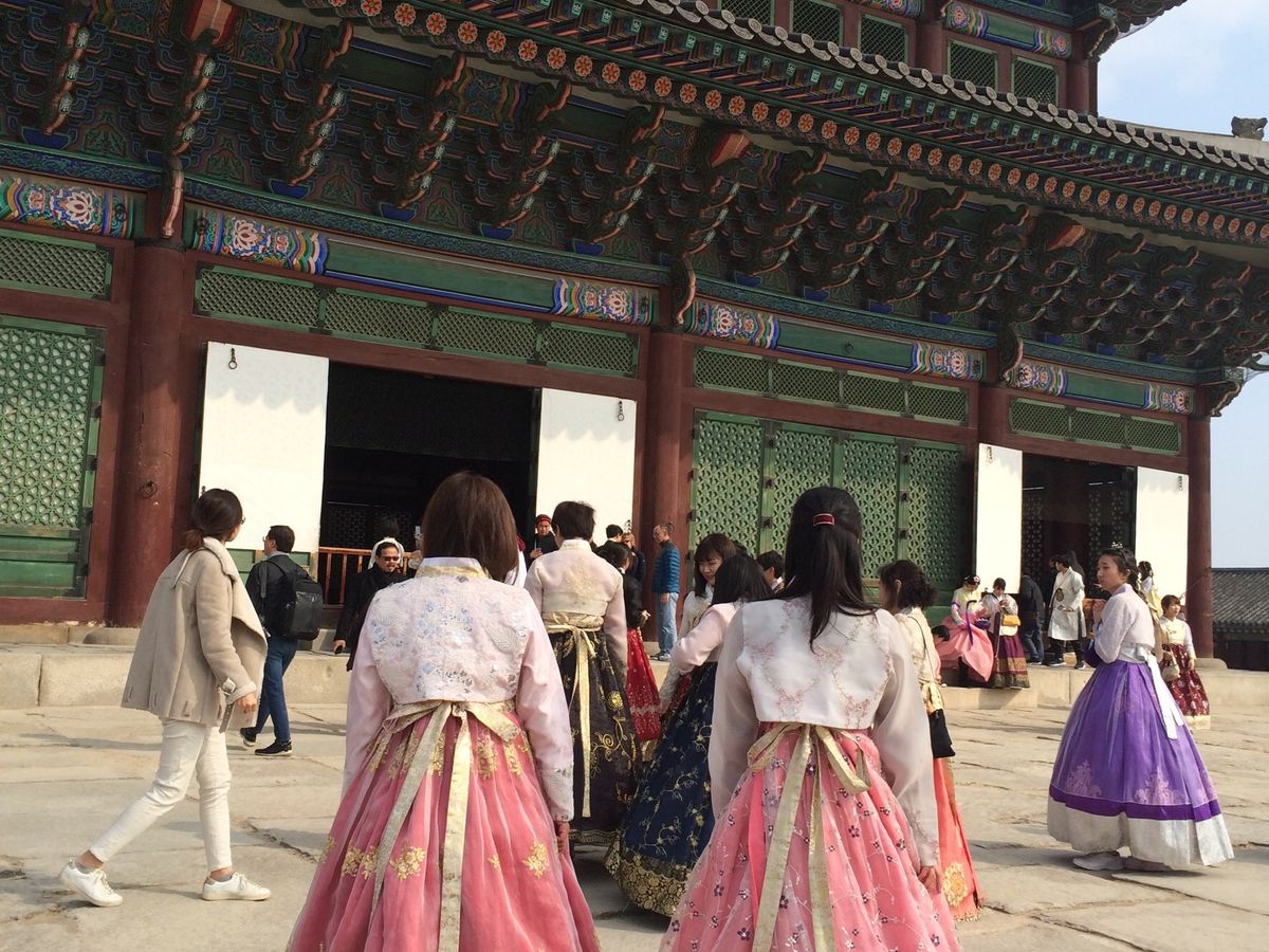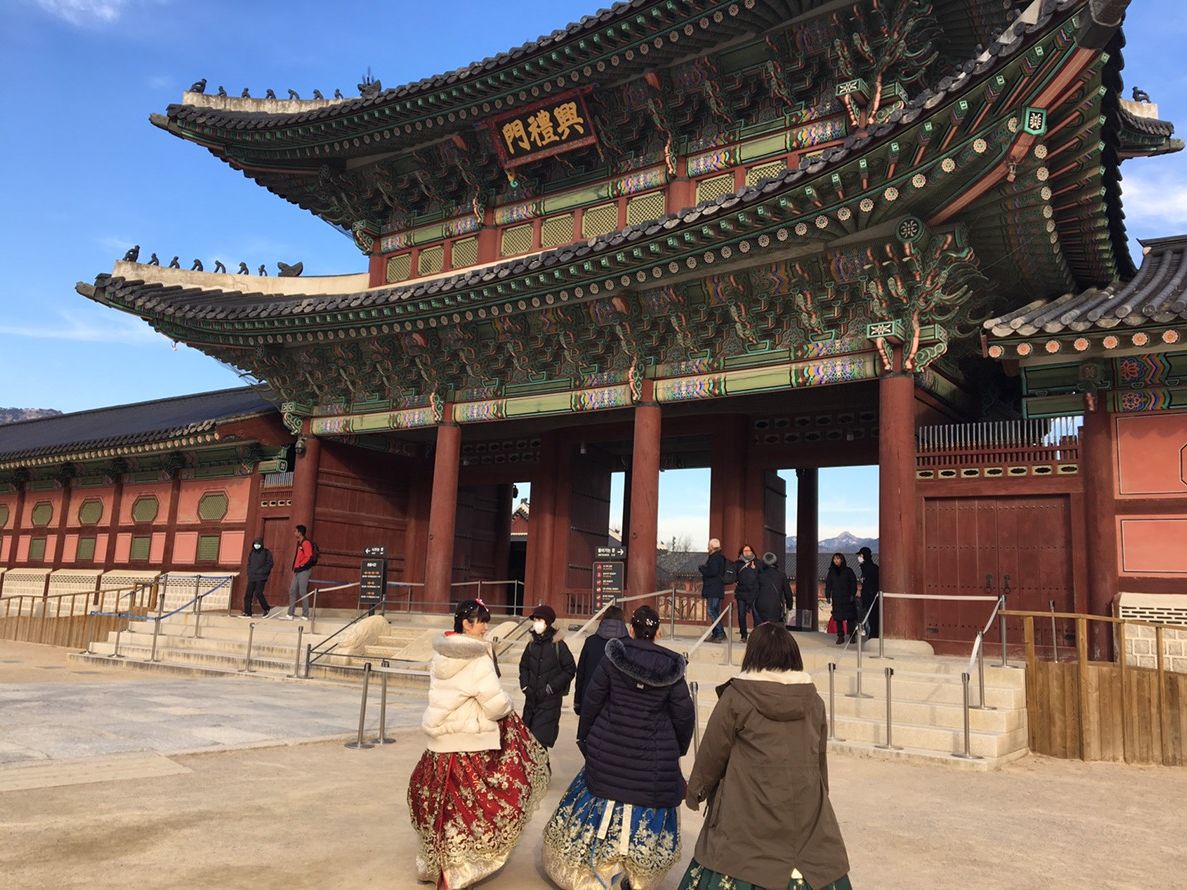 ガイドさんいわく、23名参加の一番多い日だそうで、大型バスも満席状態でスタートした時には、どうなるのかと心配でしたが、チマチョゴリのすんなり気に入ったのが借りれ、ヘアーアレンジもしてもらい、満足でした。駆け足状態で景福宮を廻るので、説明はどうしても少しになるのはしたたないと思いました。大人数での移動も大変なのに写真スポットや写し方も教えてもらったり、声もかけてくださり、よく気が利くガイドさんで良かったです。結構歩いたんですが楽しいのであっという間の時間でした。