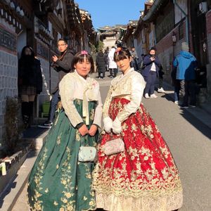 おばさんふたりですが思い切って予約しました。きれいなチマチョゴリやヘヤアレンジに大満足です。着て良かった‼おススメです。友達も大喜びでした。ガイドの李さんありがとうございました。ノリノリで楽しい観光でした。景福宮・北村で、フォトポイントを押さえたアレンジ良かったです。短時間で効率的に観光できました。今度は家族で利用したいです。