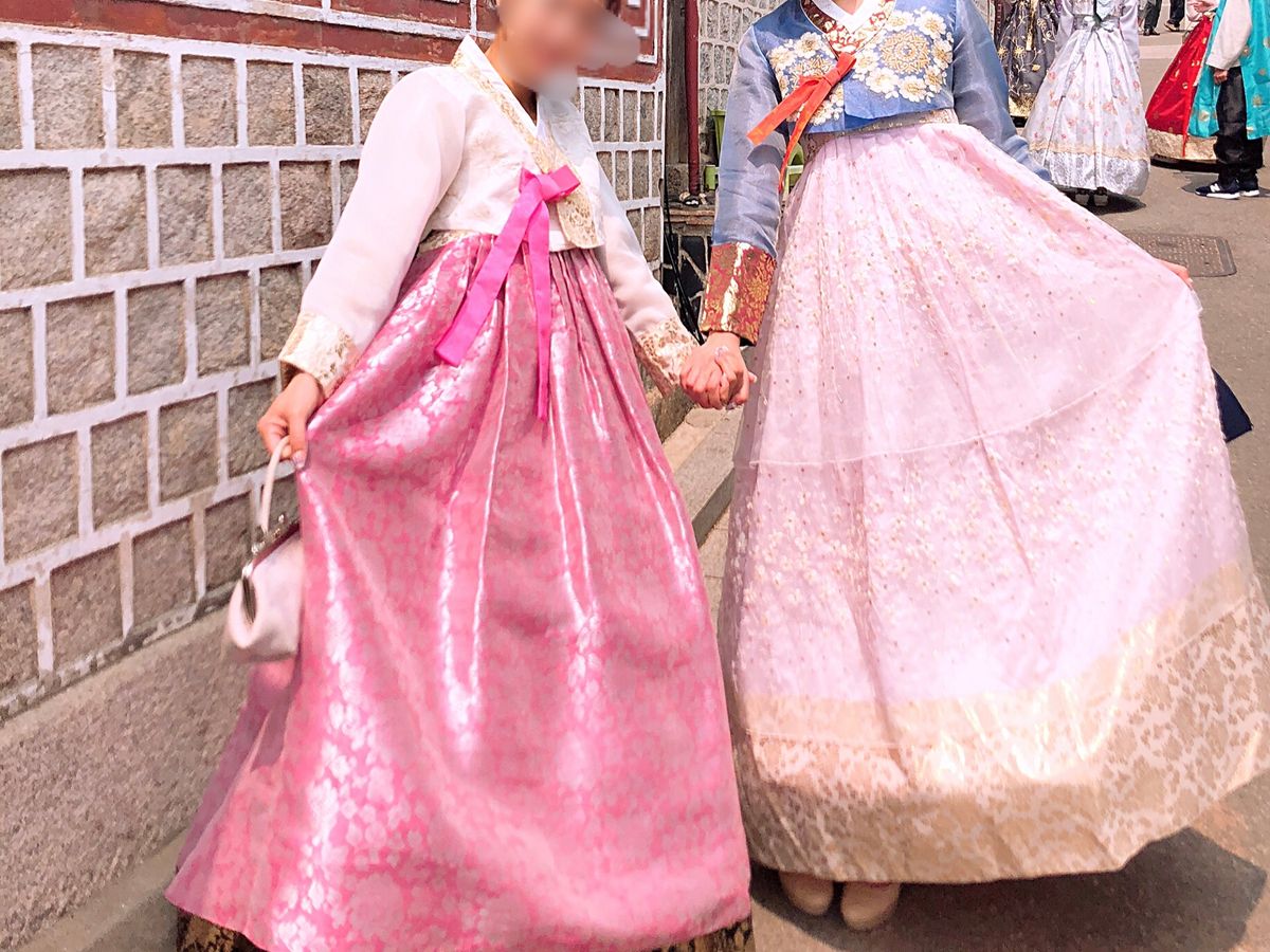 今回は、韓国へ初の友達と一緒だったのでチマチョゴリ姿ツアーにしました。