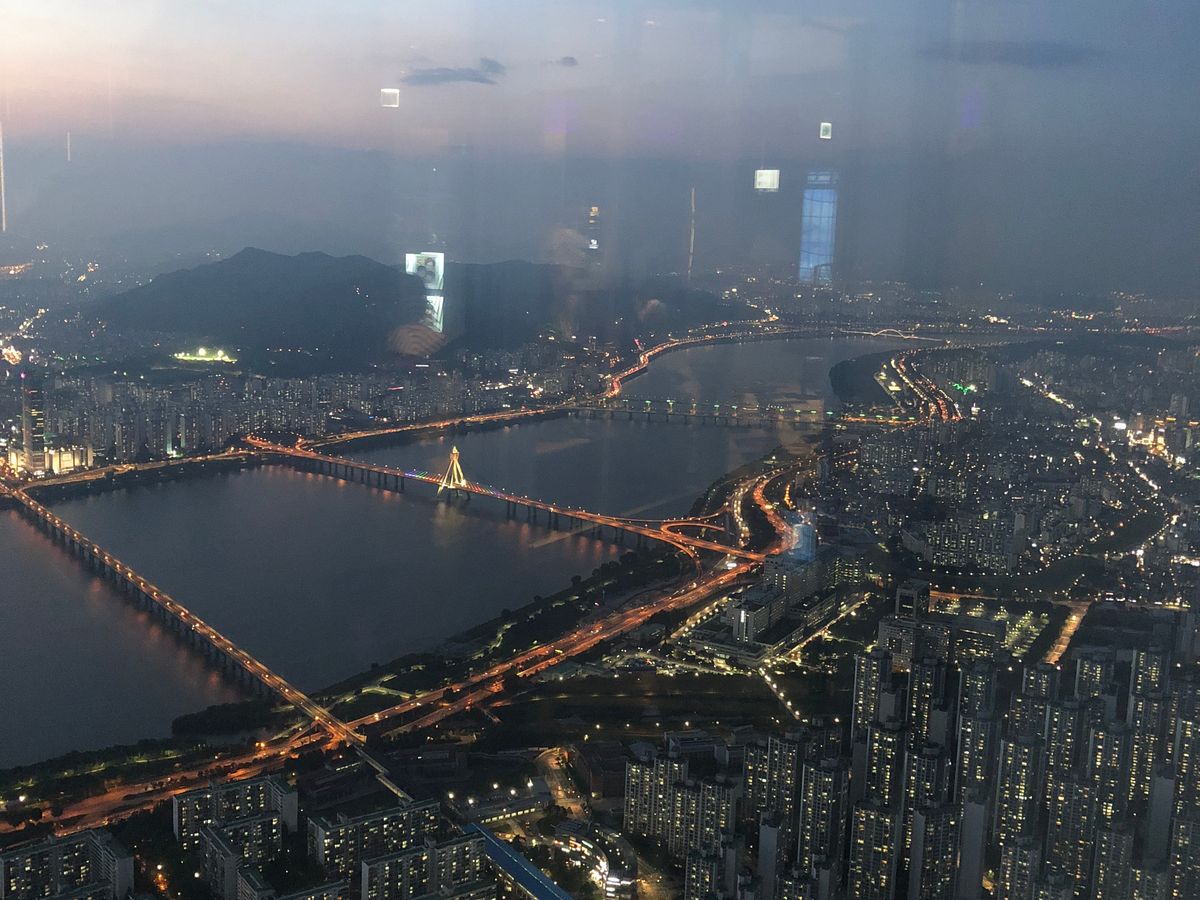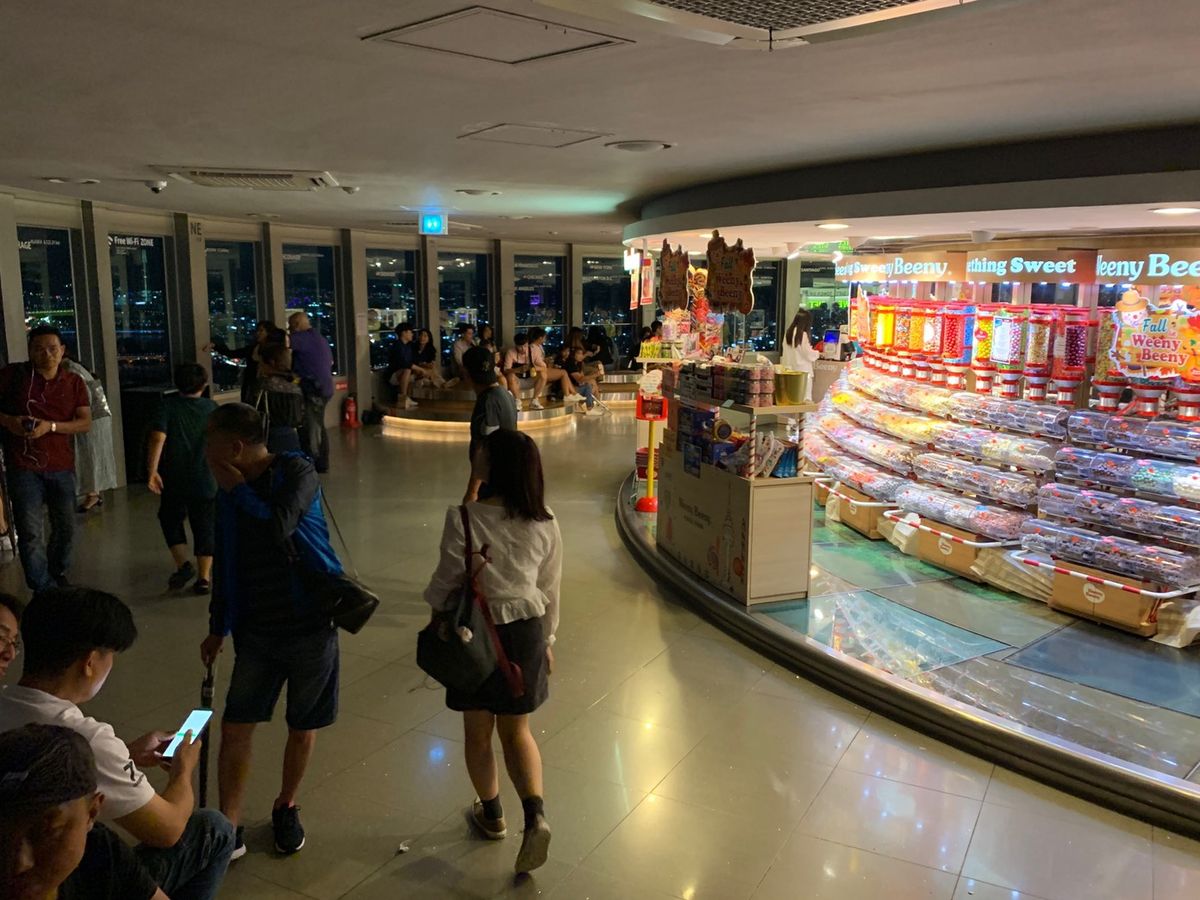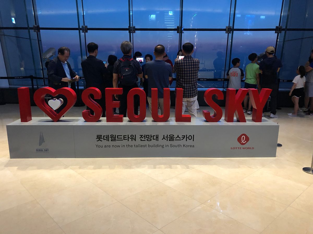 夕食も付いているプランでしたが、あまり期待はしていませんでしたがしっかり食べられました。その後、タクシーでソウルスカイに向かいました。平日だったので混んではいませんでした。入場する時に荷物チェックがあって危険物は持ち込めず、ライターを没収しました。帰りに代わりのをくれました。東大門は、デパート?みたいな所のみで市場には連れて行ってくれなかったねがチョット残念でした。