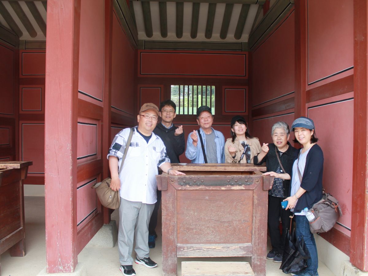 最後に華城行宮へ生き、サド世子の有名な米びつの前で写真を