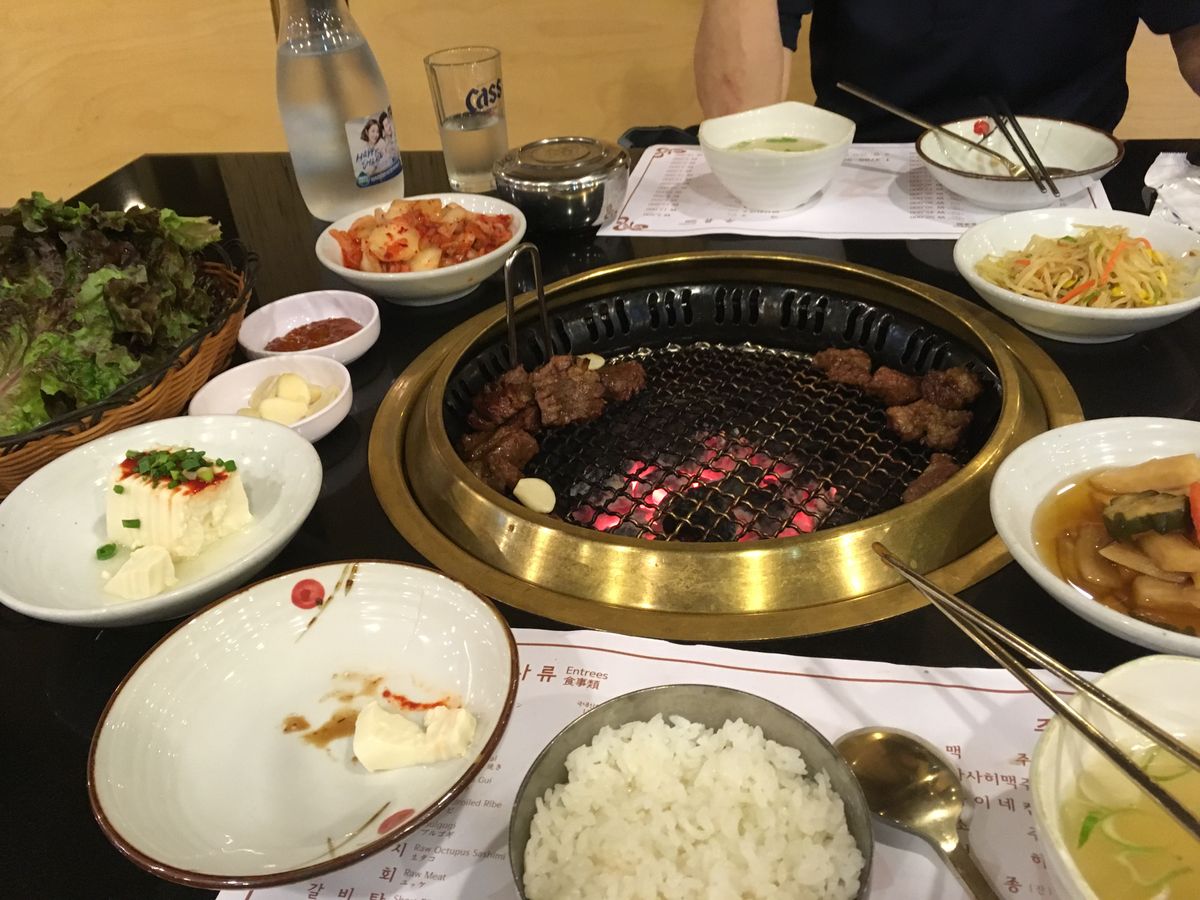 かわいい喋り方をするウォンさんとお話しながら車で少し移動して骨付きカルビの夜ごはん。チヂミも追加してパクパクたべたけど次の日、胃もたれすることもなく美味しく食べれました! 日本のバスツアーで食べるドライブインみたいなとこでした 笑