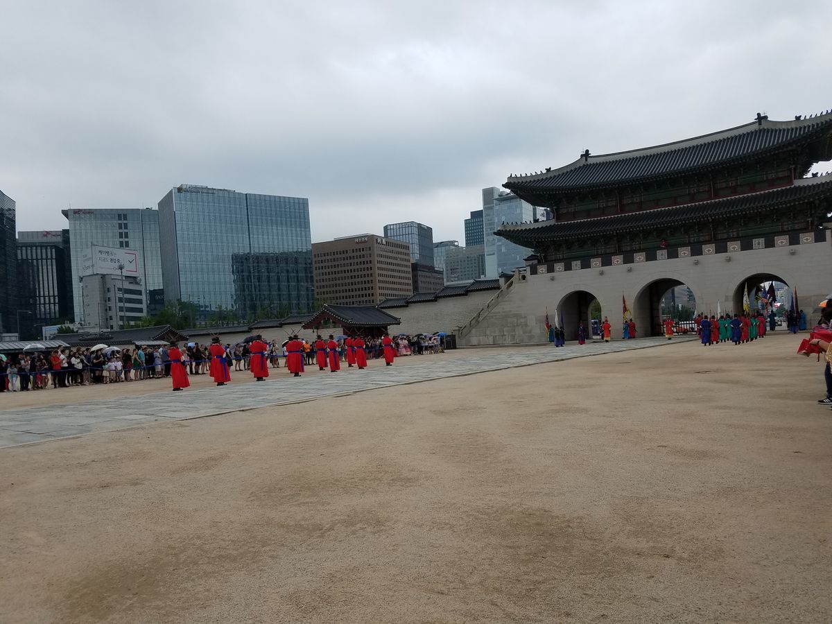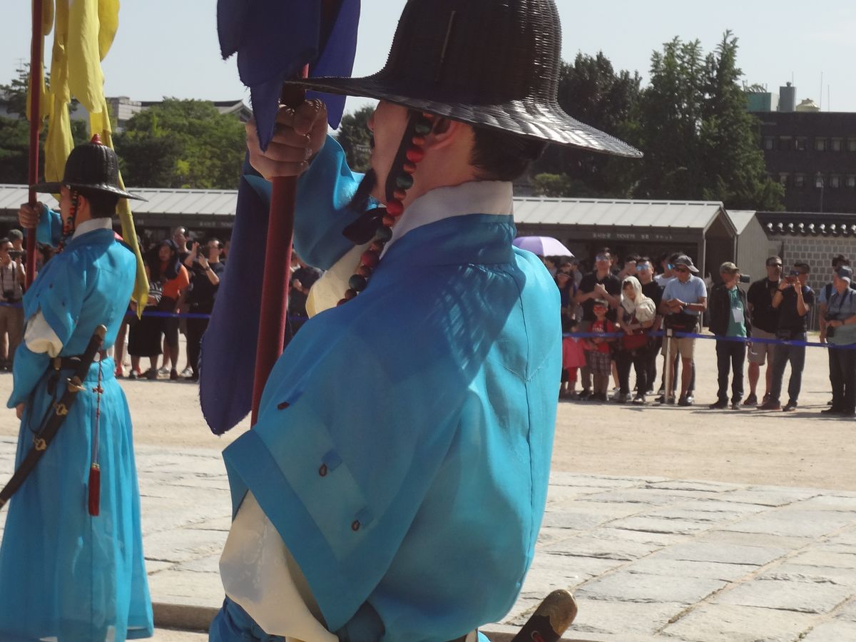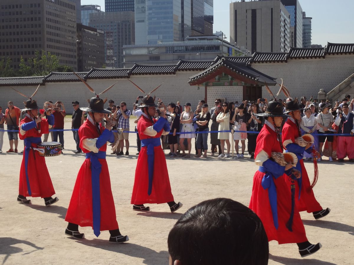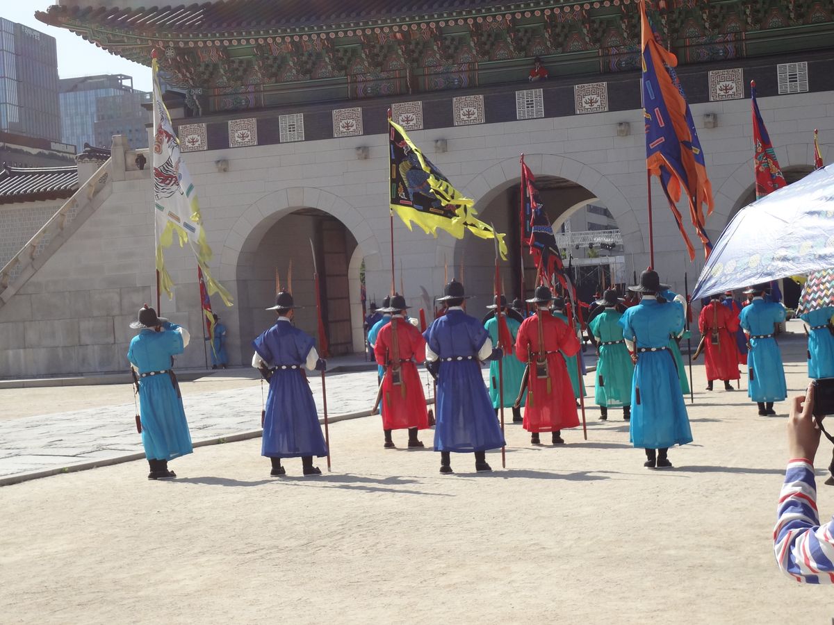 守門将校交代儀式は韓国ならではの交代儀式で他の国の交代儀式が静なのに対して動きの激しい儀式には驚きました。見ていて本当に楽しい交代儀式なので動画撮影を薦めます。(全員エキストラ)