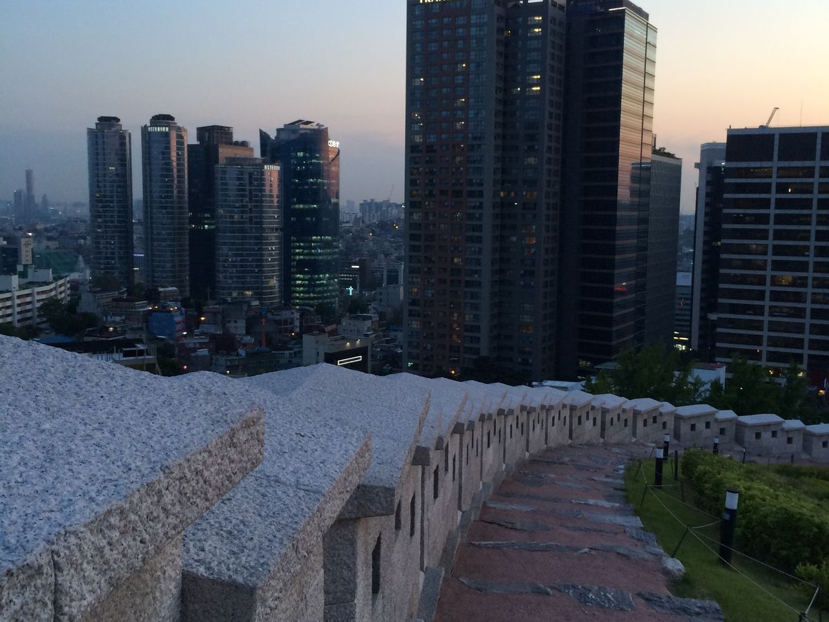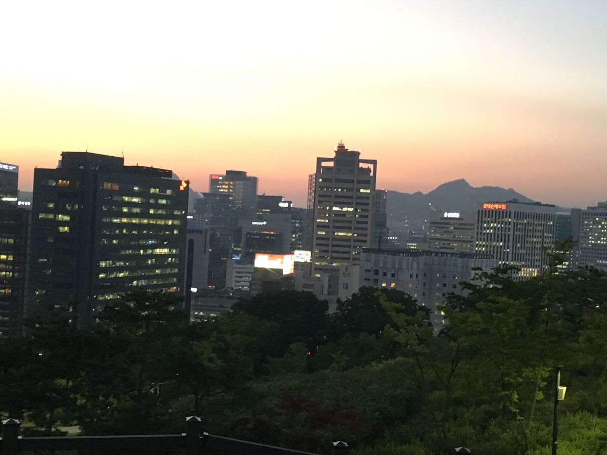 当日は、私ひとりのツアーでしたので、ドライバーとガイドさんを独占してVIPな気分でした。まずは、夕焼けから、日没後の夜景です。バックにはソウルタワーもあり