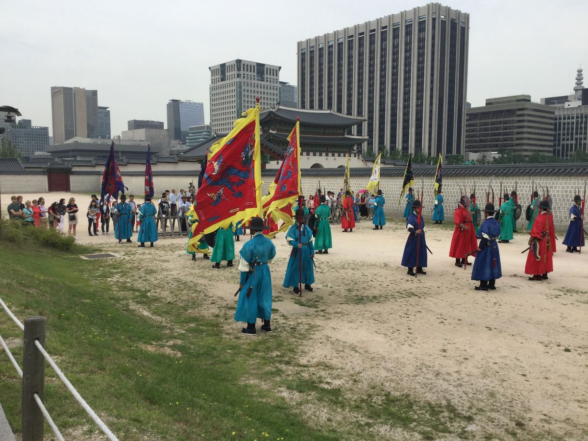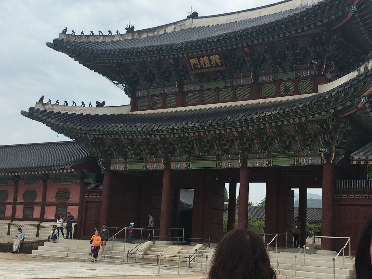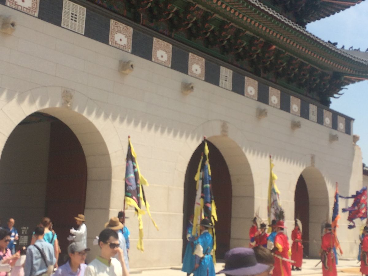 ツアーの当日、LOTTE ホテルのロビーでガイドさんと待ち合わせをしてツアー専用の車に期待と不安を乗せて乗り込んだことが今でも鮮明に覚えています。私たちが最初向かった場所は昌徳宮という世界遺産に登録されている王宮跡地で敷地が広くてなおかつ、色彩豊かな王宮跡地に行きました。最初そこに行くと観光客や地元の学校の学生で溢れかえっていました。入り口に行くとそこには大きく丈夫な門がドンと構えてありその時の王様の偉大さが分かるようなものでした。中を回って行くと段差がある石の道が目に付きました。ガイドさんによると一番高さがある石の上には王様が通りその両端には家来が通るということでこれもまた王様の偉大さの象徴だと関心しました。最初は不安だったツアーもガイドさんとの会話で和らげ次第に韓国の事がもっともっと知りたくなりました。残念ながら今回は守門将交代式 は日程上の問題で見れませんでしたがそれでも楽しくツアーを終えることができました。ガイドさん短い期間でしたがありがとうございました。