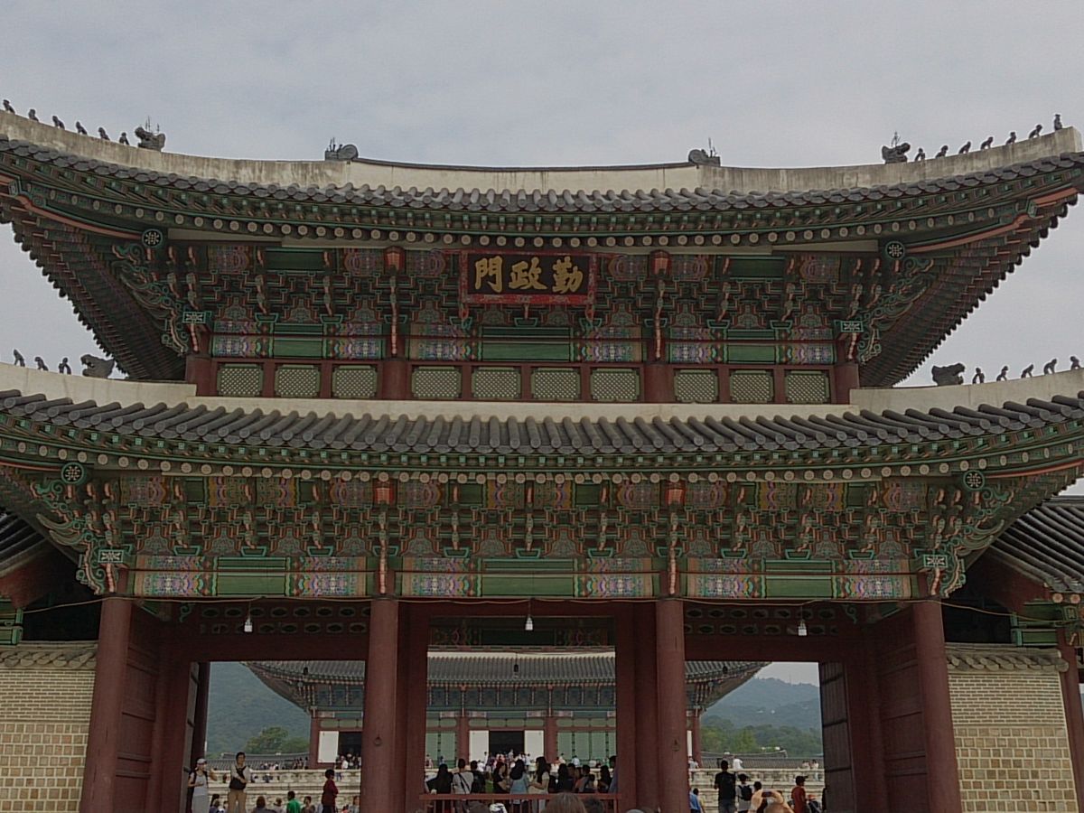 気温16度とコートが必要な寒さの中、大変分かりやすく楽しい説明を聴きながらちらほら雨の降る中、青瓦台や景福宮を観て回りました。
