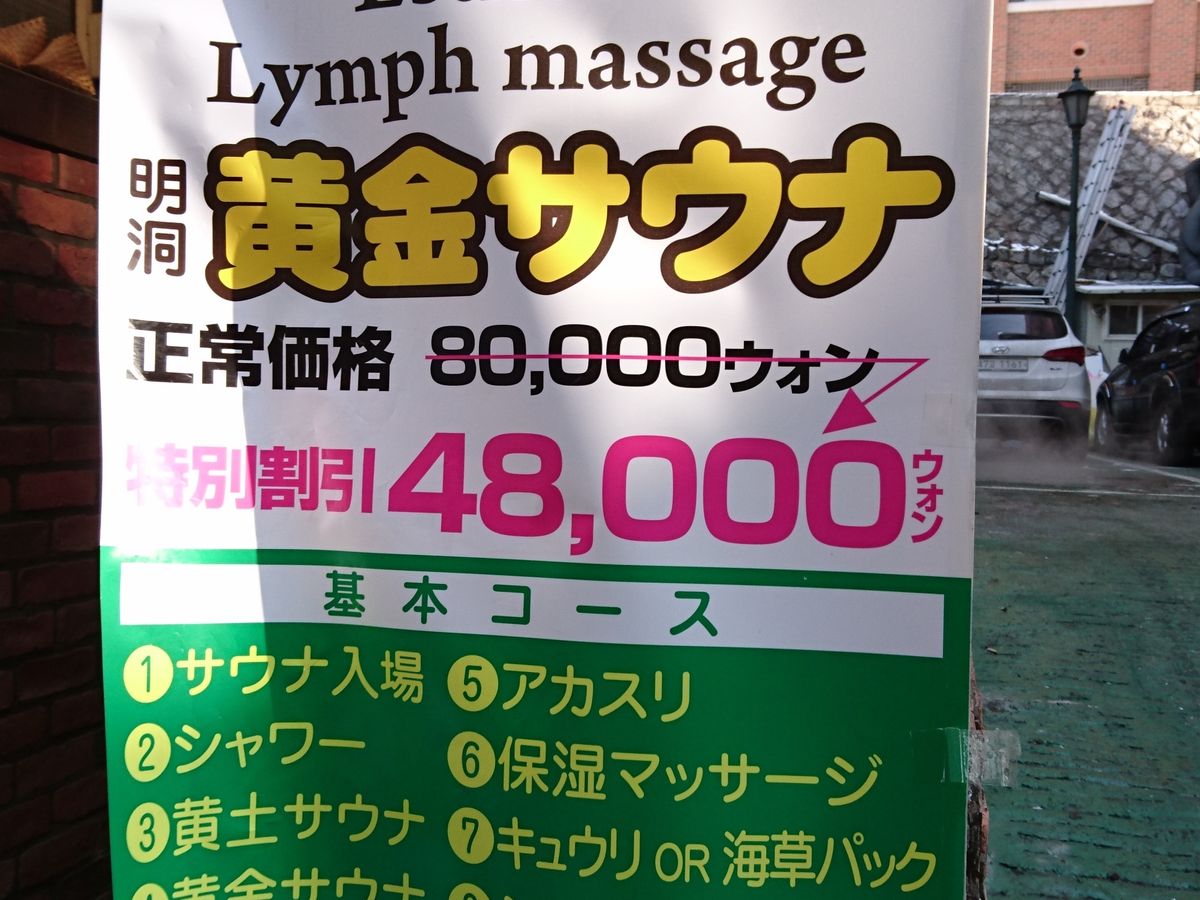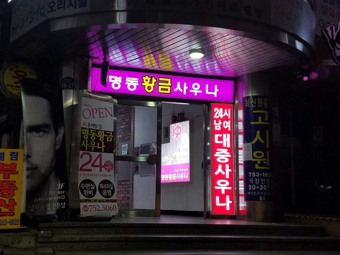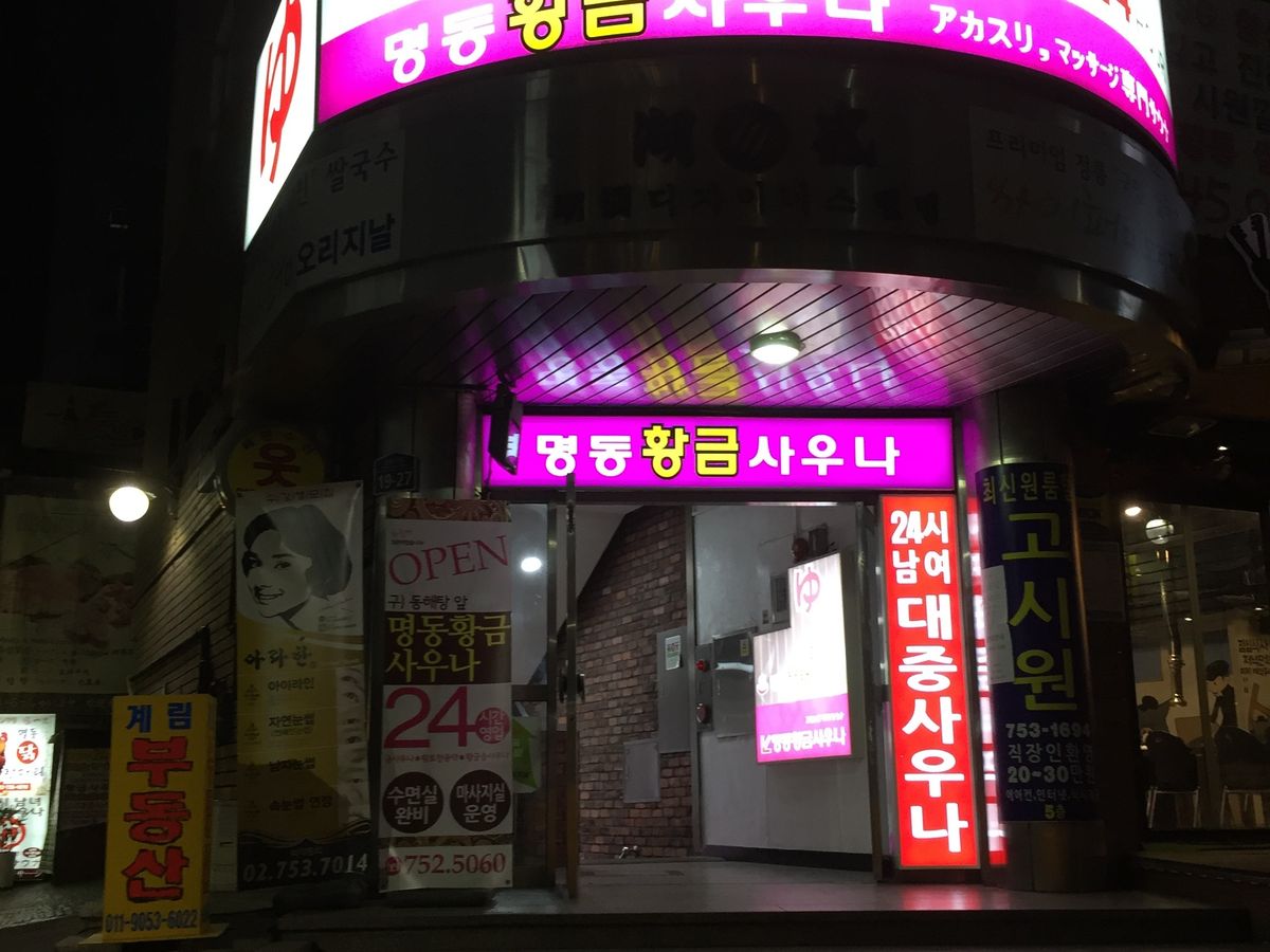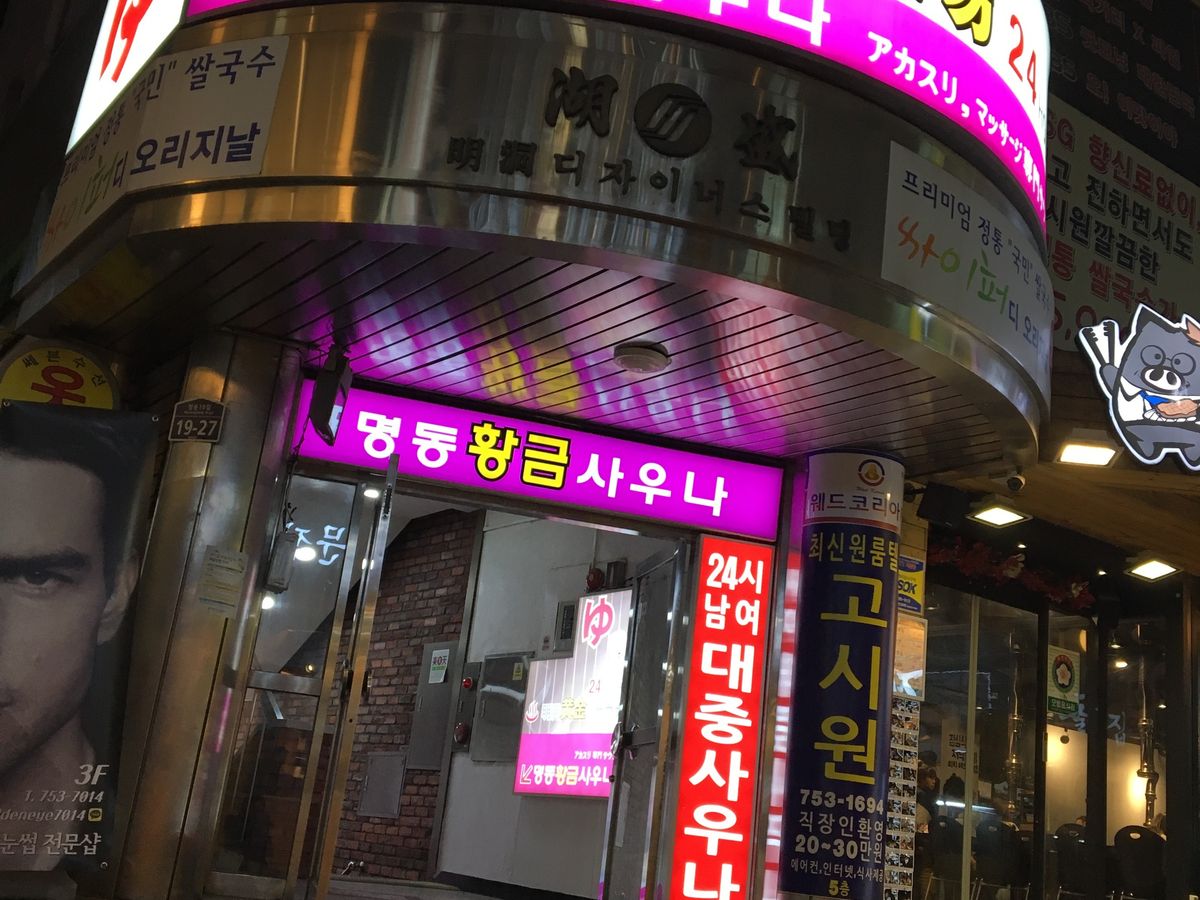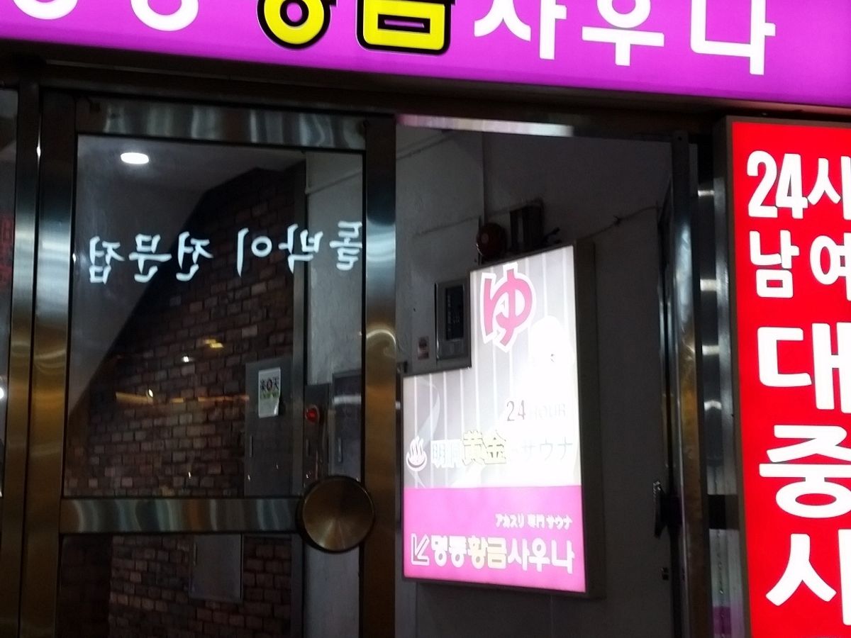 -12度の極寒の中、明洞の繁華街の脇道を入ると黄金サウナの看板がとても目立つのでわかりやすいです。