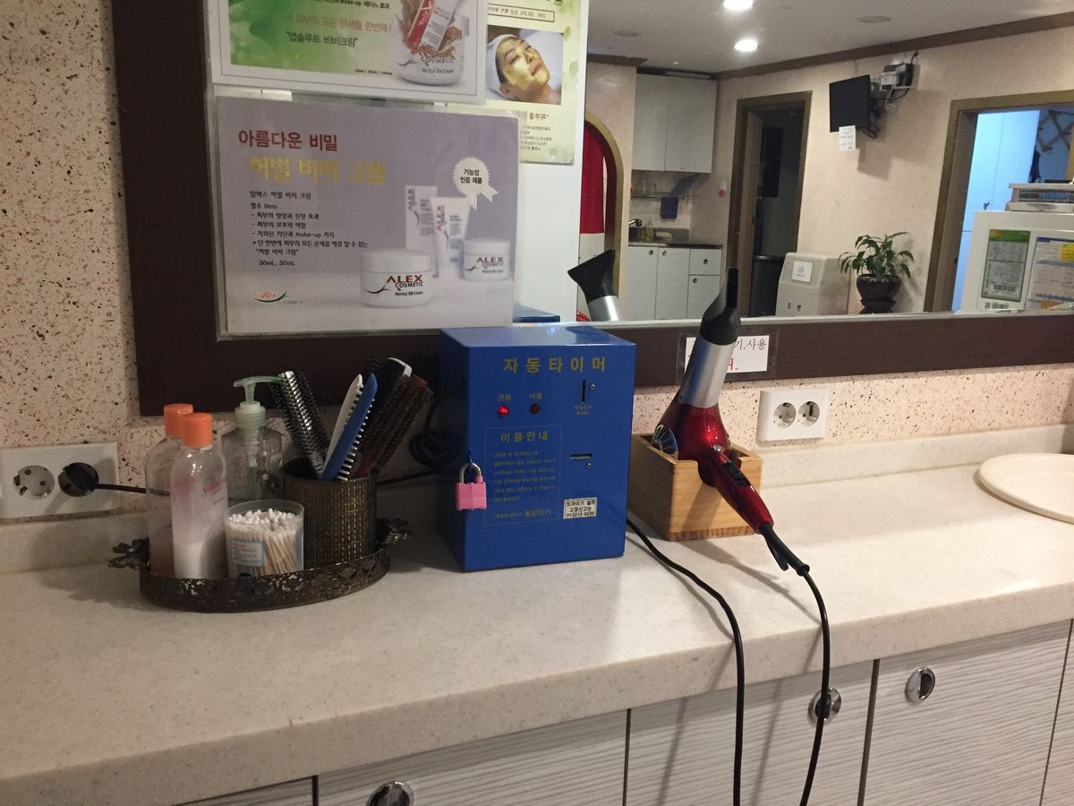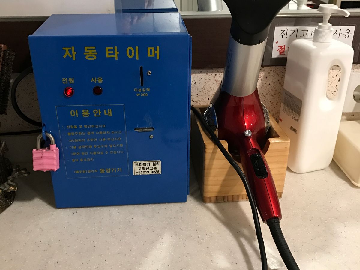 後、髪の毛乾かすのにドライヤーに200ウォン?入れなきゃだめなのかなと思ったけれど、その200ウォンは、用意してくれてました。