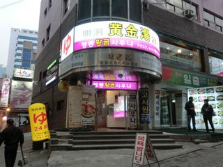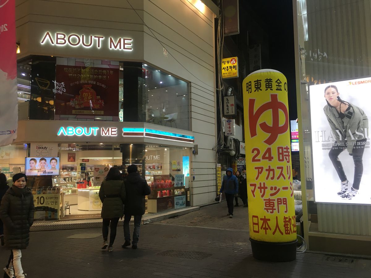 場所は明洞の中心にあり、買い物や食事の後の立ち寄りにとても便利です。看板も大きくわかりやすいですし、漢字表記で間違い憎く、探して迷うようなことはなさそうです。