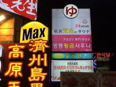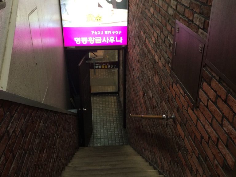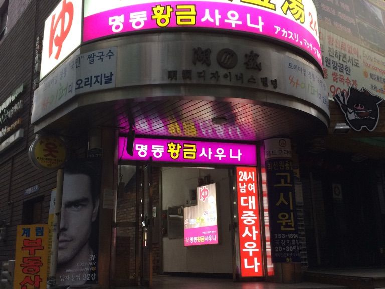 ●場所について●わかりやすかった。順路としては、地下鉄明洞駅6番出口からまっすぐ進んで三本目の通り右側にZARAがあり、そこをZARA方面に曲がり進んでいくと正面左側に「ゆ」「明洞黄金のサウナ」という文字ガ見えてきます。看板向かって歩いて、地下一階です!