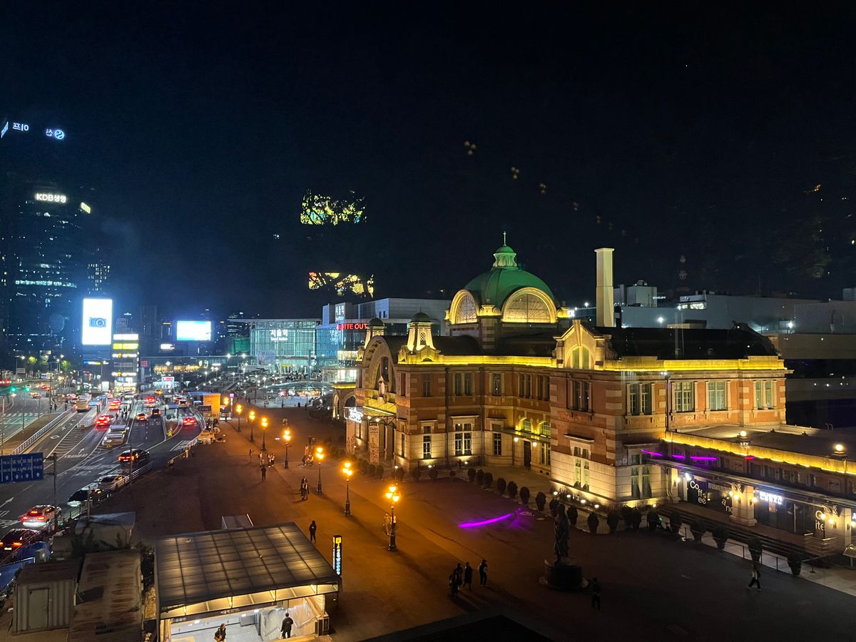 夏で日の入りが遅いため 徳寿宮のライトアップが残念でしたが、漢江の夜景はとても綺麗でした。ソウル路7017のブルーライトがとても幻想的です