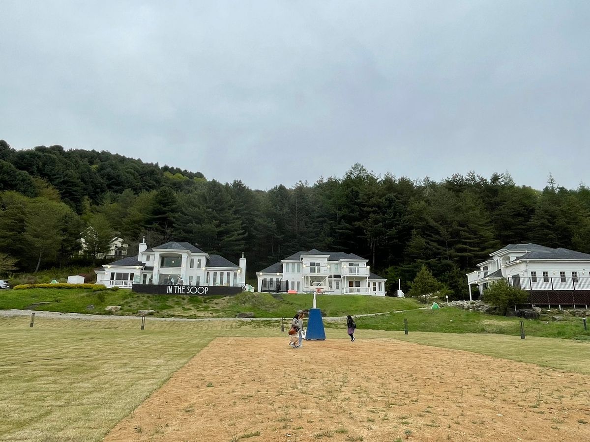 遠いことは覚悟してたものの、最初の目的地まで3時間強ノンストップと言われ少し不安になりましたが寝てたらすぐでした(笑)江原道のあのバス停、inthesoop ver2の白い邸宅に実際に行けます。夢のようです。ツアーは大型バスですがinthesoopへは山道なのでマイクロバスに乗り換えます。私達の日は山の上は雨で濡れながら周りましたが前日は晴れだったそうです。お天気変わりやすいのかもしれません。ガイドさんは英語で案内ですが簡単な英語がわかれば問題ありません。とても優しいガイドさんです。オマケで行き帰り、ナムさんとジミンの家のある辺りでここよー!と教えてくださるのでテンションあがります(笑)