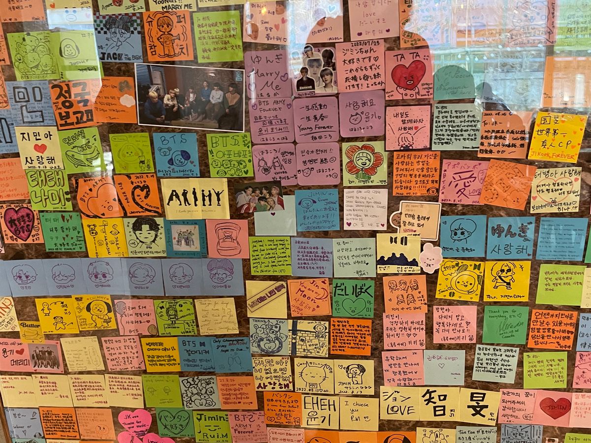 行きたかったところがほぼツアーに入っていたのと、小学生の子供と2人で聖地巡りするのは不安だったのでツアーに申し込みしました。参加した日は私たち親子2人だけでした。ガイドのキムさんにたくさん写真も撮っていただいたり、移動中もBTSの話をたくさんしてくださり楽しい時間を過ごせました。ちょうどジミンちゃんのセンイル前だったので、HYBE周辺はジミンちゃんだらけで、日本ではなかなか見ることない光景に子供も興奮していました。次回もまた参加したいぐらい親子で楽しめました。