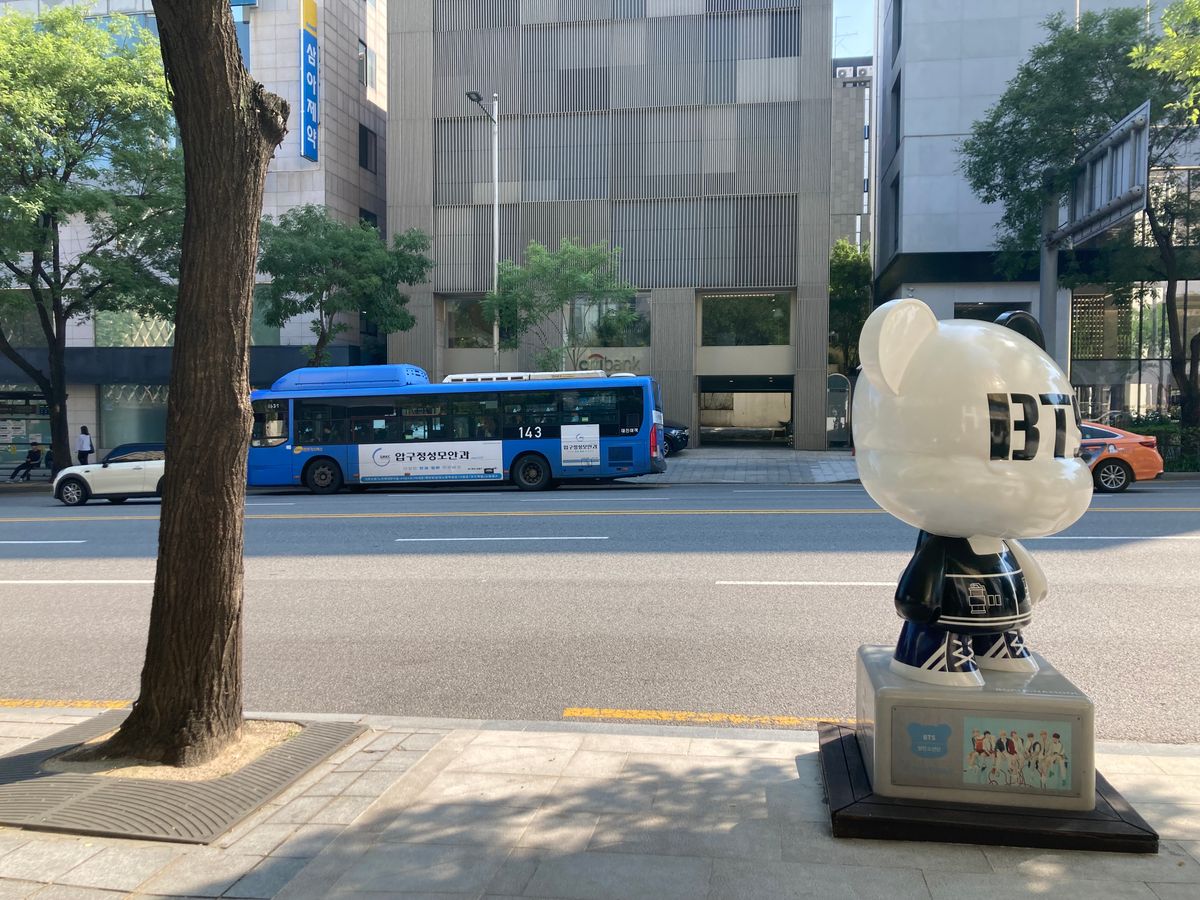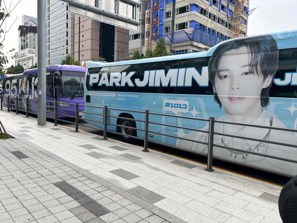 私が乗ったバスは、サービスエリアに寄っておやつ(グクがV logで食べていたやつです!)をもらったあと、先に注文律(チュムンジン)のBTSバス停へ。