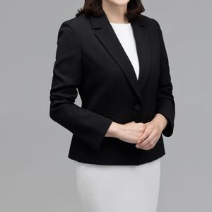 ビジネスにも利用できるよう、白ワンピース+黒ジャケットをお借りしました