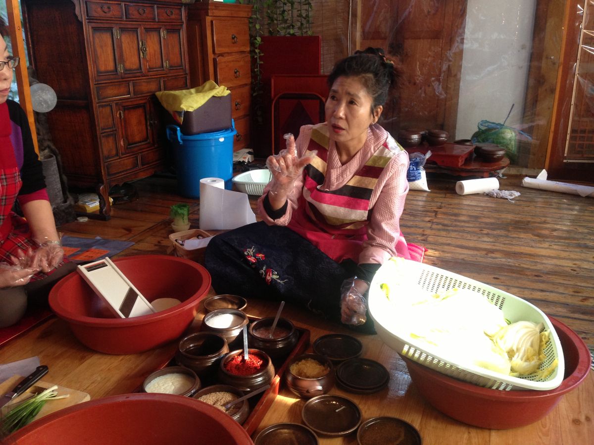 まずはWooさんの元気さに圧倒(笑)すごいすごい元気な方で流暢な日本語のマシンガントークに笑わせていただいたら、そこにWooさんのご主人様が登場してキムチ作りを教えてくれます。ご主人はWooさんの真逆で寡黙な方。いやーどこの国も夫婦ってこんな感じでうまくいくもんだなと感動しました。(そんな感想はココではどうでもいいですね^^;)