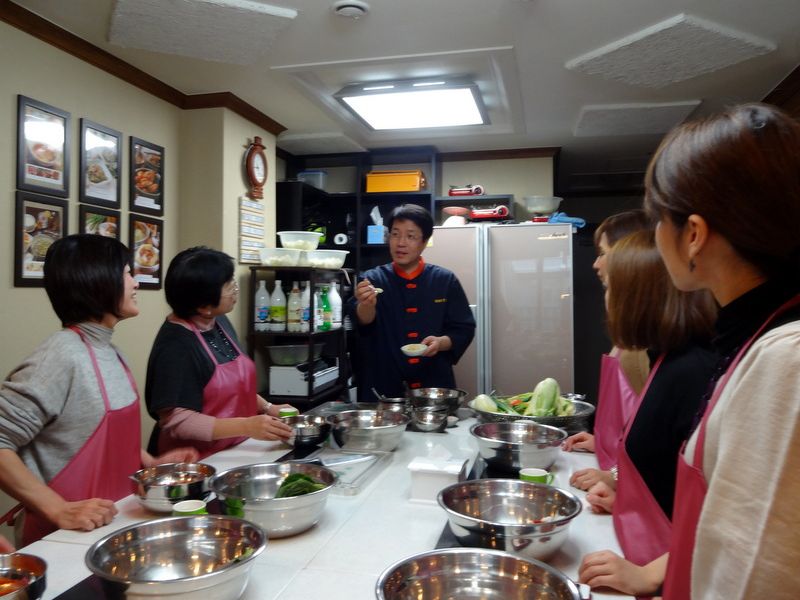 キムチ作りは日本語の上手な李先生に楽しく教わることが出来ました。写真も撮っていただき嬉しかったです。当日、香港のからの方達とも一緒でしたが、英語、日本語、韓国語、広東語でワイワイとステキな時間を過ごすことが出来ました。