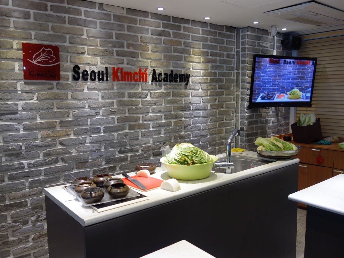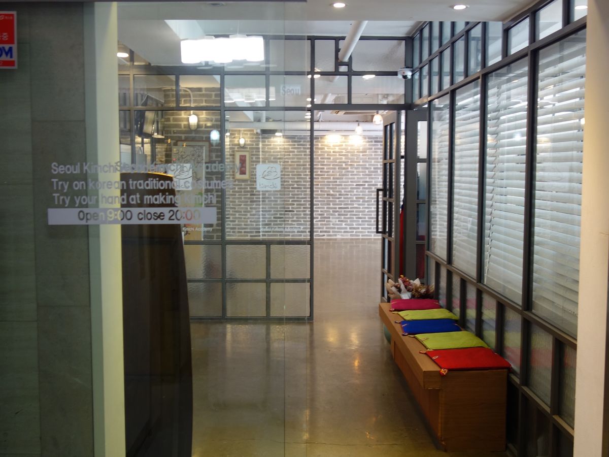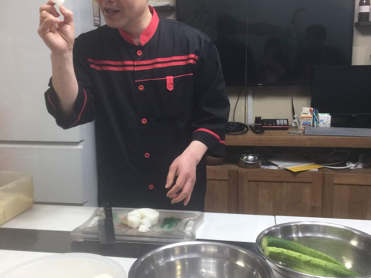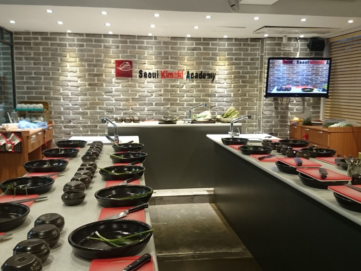 流暢な日本語を話すウー先生ご夫婦の教室です。明洞の駅から歩いてすぐのマンションの一室で清潔なまな板や包丁が各々に用意されておりキムチを作り終えた後はラッピングされて日本まで持ち帰れます。所要時間は90分ほど、作り終えたらキムチの試食です。マッコリとご飯やイカやタコのキムチや韓国海苔で軽いお昼ごはんをいただけます。良い経験でした。使用した材料、調味料など買うこともできます。