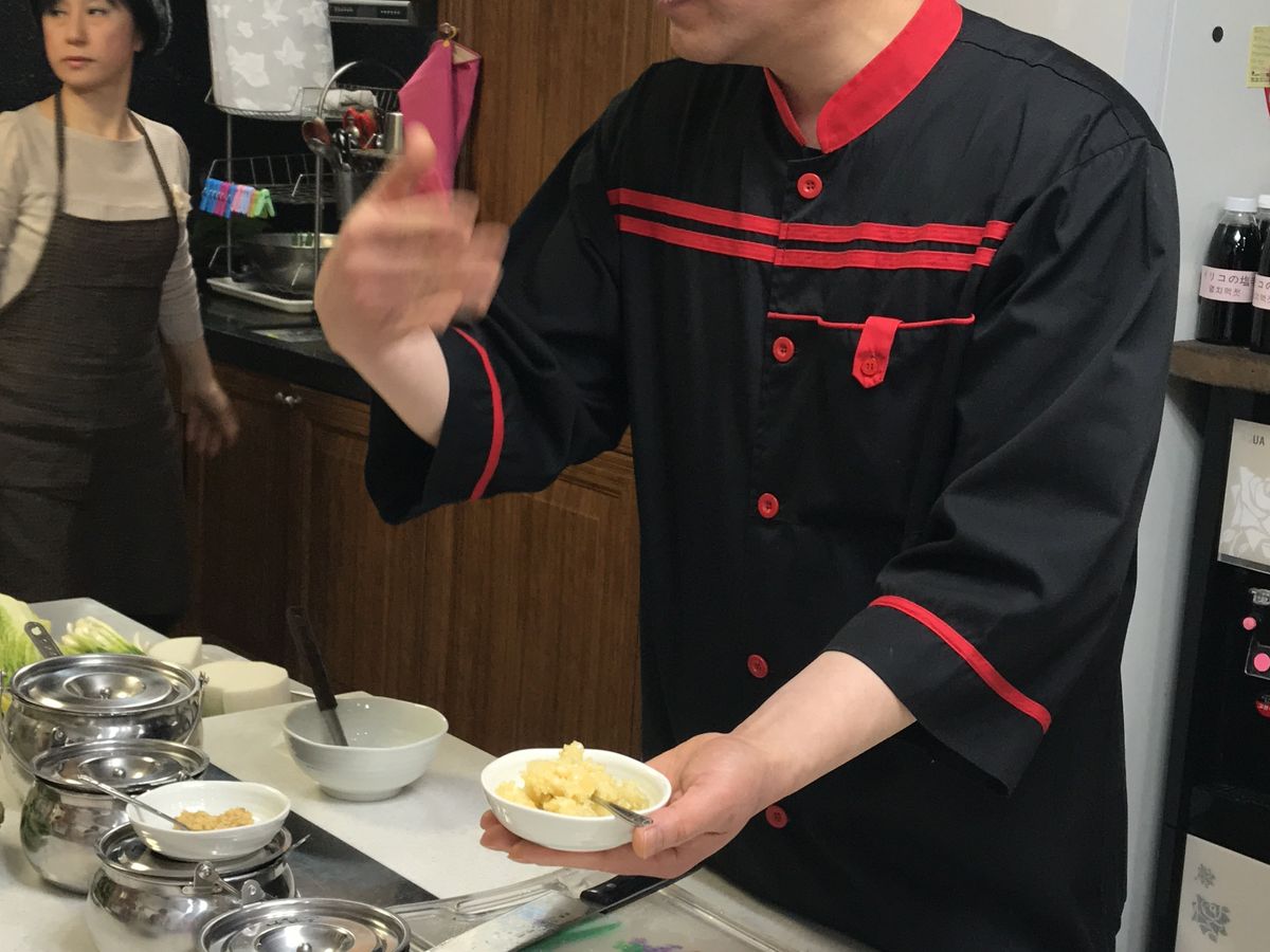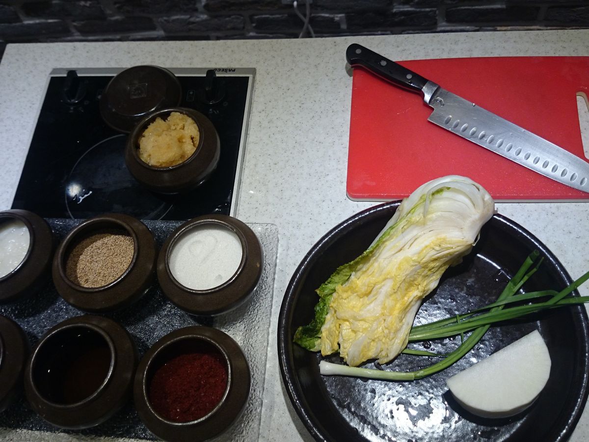 初めてのキムチ教室。油断したら先生のペースにハマリますよ。