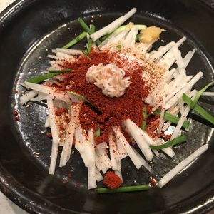 次々と運ばれてくるのですが、毎回チマチョゴリを着た方が丁寧に説明して下さり、分かりやすかったです。現地の方には薄いと言われているそうですが、出汁が効いているので美味しく、大満足な味でした。関西や沖縄風の昆布、カツオの味が効いている味に近い?といった感じでしょうか。デザートまで何品も美味しく、いい時間でした。