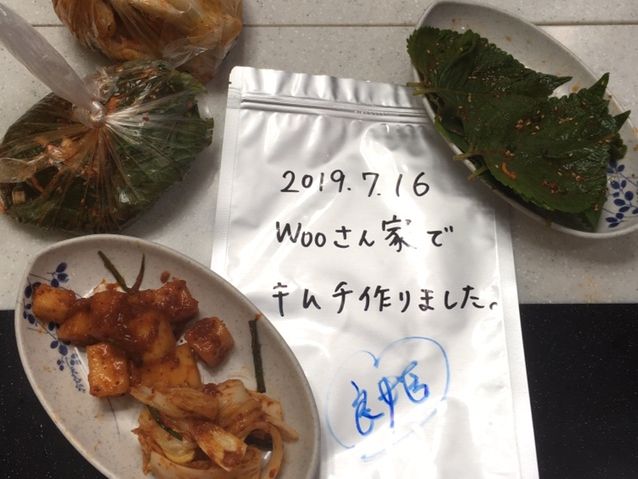 場所が分からなくて、少し迷いました。Wooさんのキャラクターがユニークで驚きました!白菜キムチだけの予定が、Wooさんの宣伝効果により(笑)、エゴマも欲しくなり追加しました。