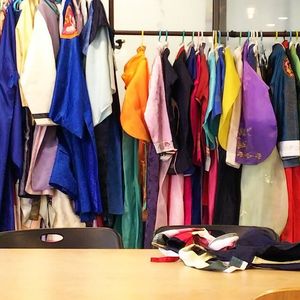 キムチ作りの前に、好きなチマチョゴリを選んでカメラを預けて撮影してもらいます。