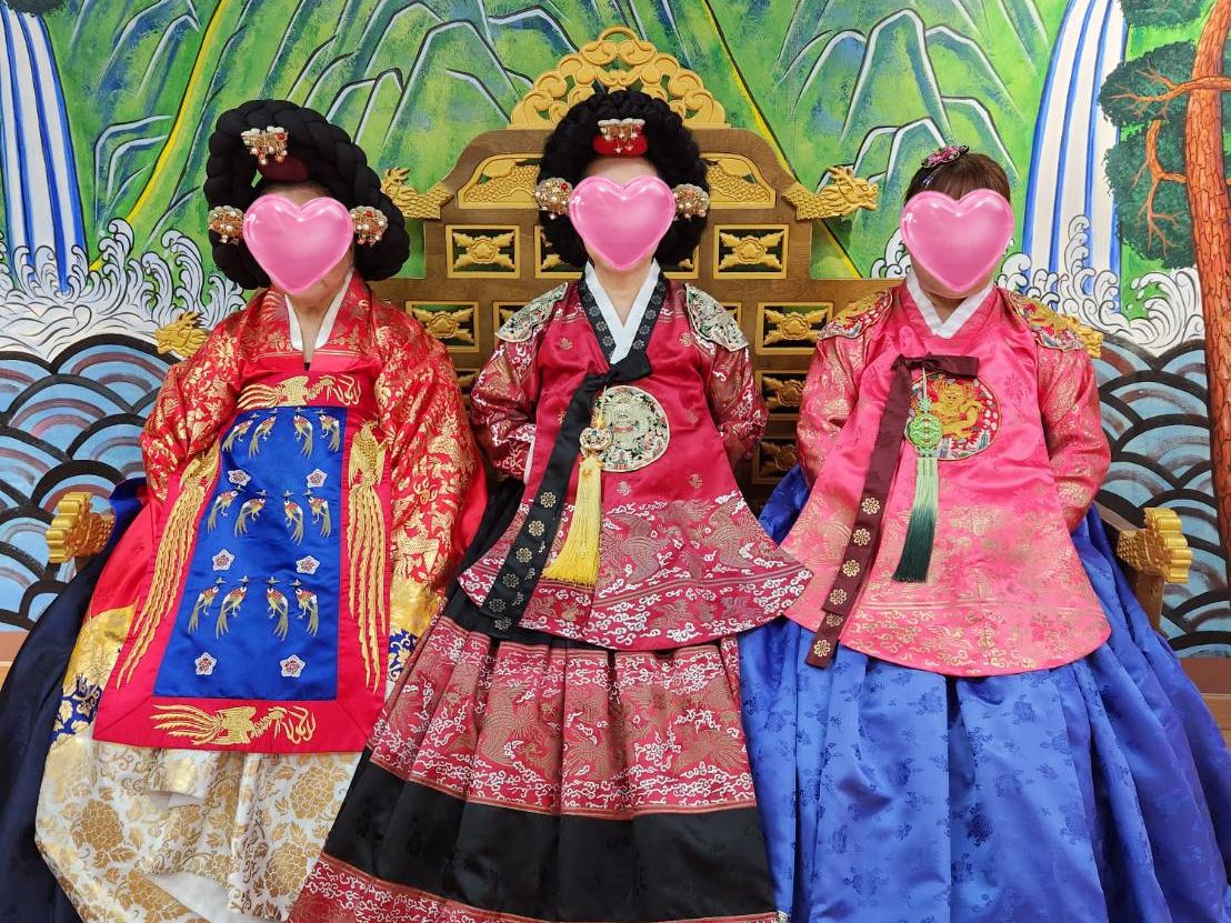 最初は普通のチマチョゴリを着ようかなと予約しましたが、ドラマの衣装を体験できるので、追加料金して、姉妹で同じドラマの別の役の人の衣装を着て撮影しました。めちゃくちゃ楽しかったです。冬で寒かったのでスタジオにして、正解でした。もしかしたら、時間によっては着たい衣装を前の人が着ていて選ぶときにないこともあるのかなと思いました。
