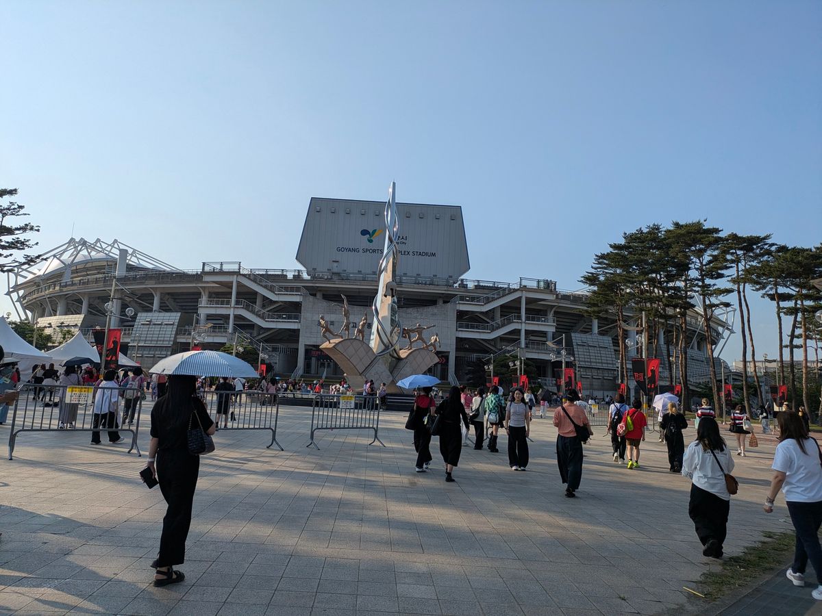 コヤン運動場はソウル郊外にあるので、行きお帰りも外国人には少しハードルの高いコンサート会場となります。その分、規模も大きいのですが、終了後は会場前の信号を渡るにも数十分となる場合がございます。。そんな中、早くに集合頂きありがとうございました!チケットの種類によって終了後にグッズの受取りがあるお客様がいらしたようで、出発を少しお待たせしたかと思いますm(_ _)m