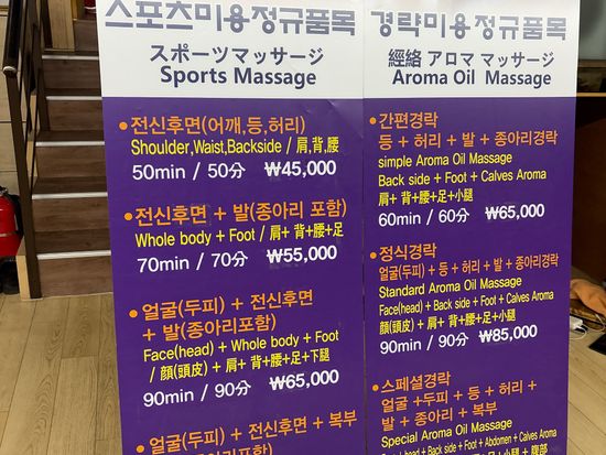 最終日にのんびりお風呂に入りたくて予約しました。スーパー銭湯のようなところでマッサージの受付が24時過ぎにまだやっていたので24時半から70分のスポーツマッサージ(肩、背中、足)のコースをやってもらった。すごく痛かったけど翌日はスッキリ気持... 続きを読む