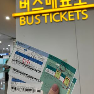 仁川空港への飛行機の到着が天候悪化のため遅れてしまい21時20分に到着。急いで、空港内のバスチケット引き換えの受付に行きましたが22:00を回ってしまい閉まってしまってました。ただ、ターミナルビルのすぐ外の窓口が22:30まで窓口が開いていたので、QRコードを示して発券してもらいました。ギリギリ最終バスにのり無事ホテル前に着きました