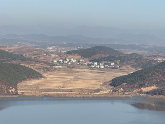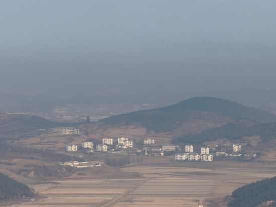 それと引きかえに、北朝鮮は、うっすらと山とかがみえる感じでした。