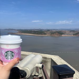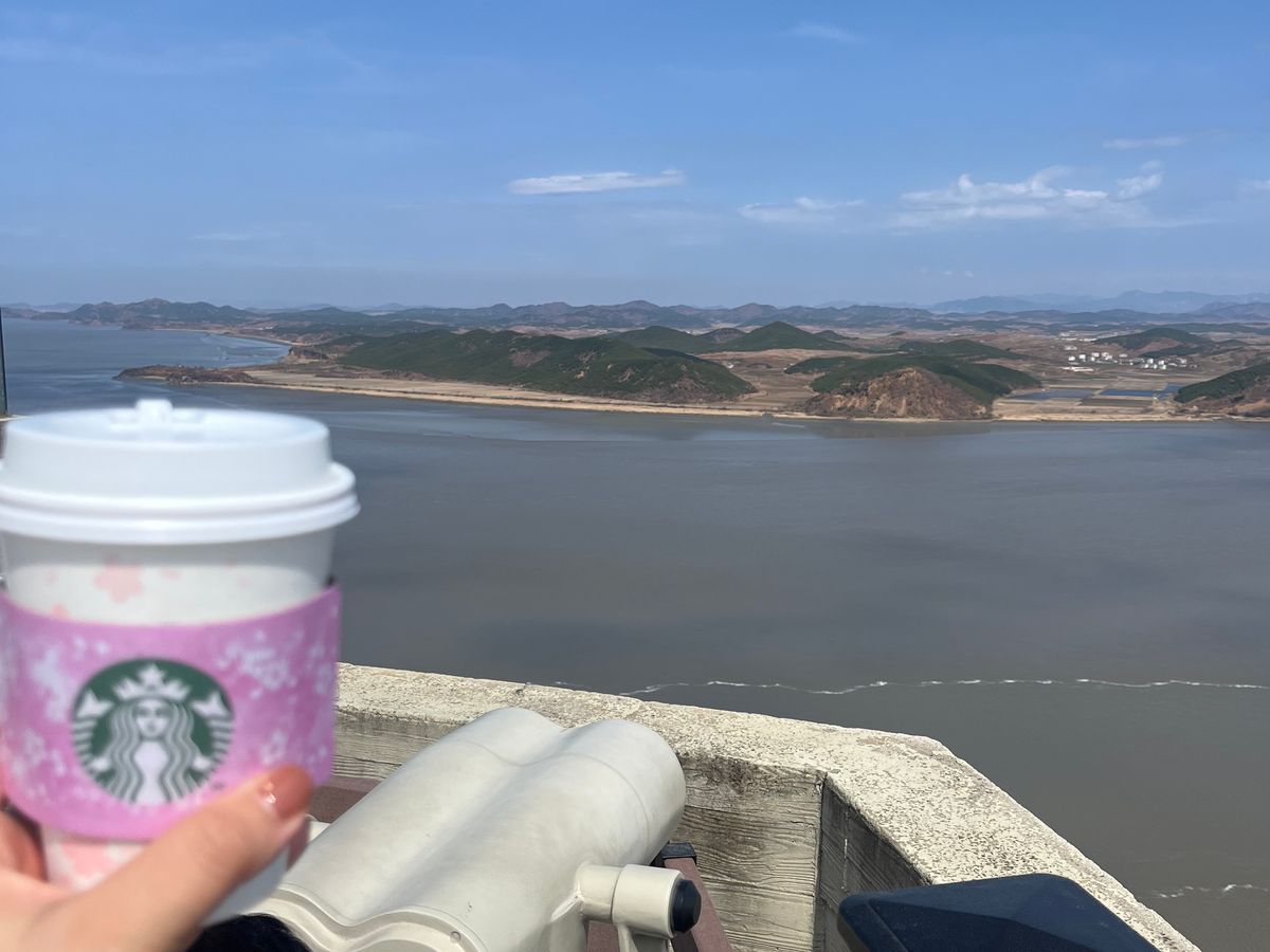 北朝鮮が見えるスタバはとても貴重な体験です。