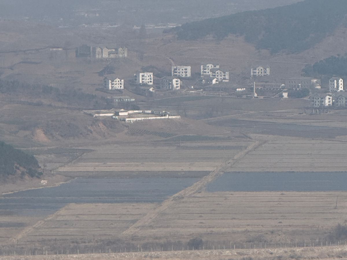 双眼鏡から北朝鮮側で歩いている人を何人も見た。同じ人間なのにまったく違う世界住んでいるということを身を以て感じた。
