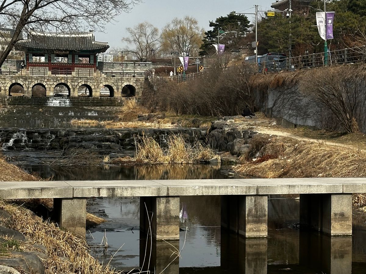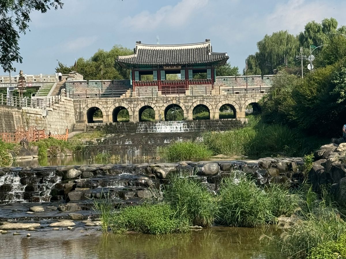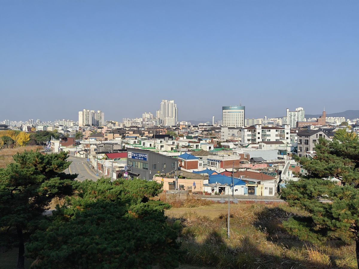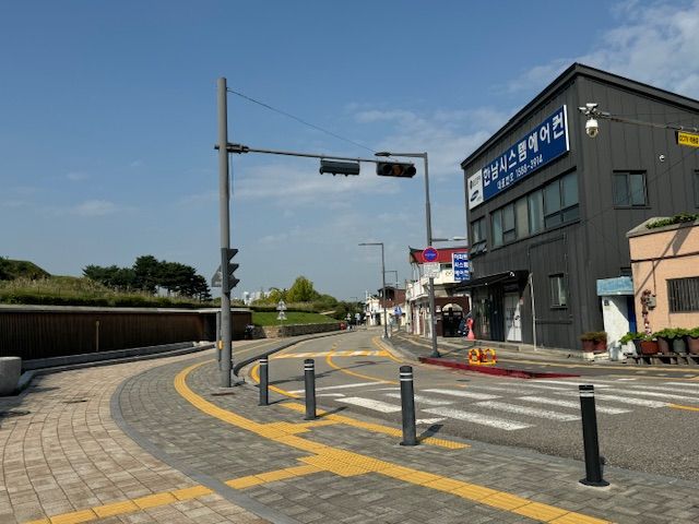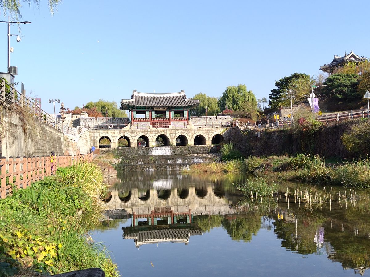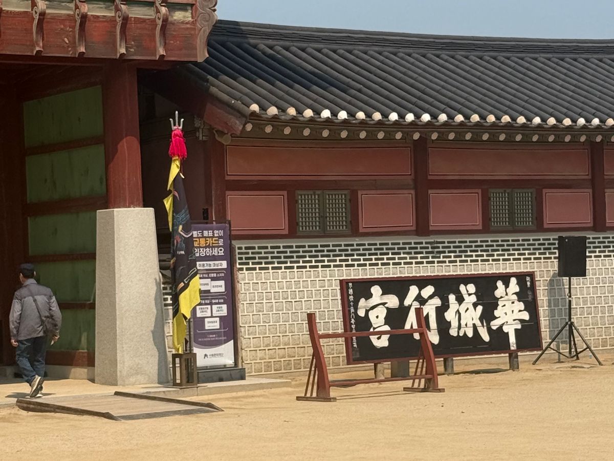 朝はホテルまでお迎え付きで、思いがけずガイドのキムさんと私たち2人とのプライベートツアーのようになり、広く綺麗なワゴン車で快適なドライブでした。ガイドのキムさんは日本人かと思うくらい日本語が流暢で、車内でも景色を見ながらアレがあのドラマに出てきた橋です!建物です!等々細かな情報を沢山教えて下さり、その他韓国の知らなかった文化や日常あるあるなども面白おかしく聞かせて下さいました。当日は快晴に恵まれ、到着後は青空と緑の中の水原城が素晴らしく、都度都度キムさんの解説を聞きながらソンジェ達の通学路、バス道路、自転車練習した場所、2人の向かい合わせの家、等々、細かな聖地がほぼほぼ歩いて周れ途中途中キムさんがソンジェのシーンのキメポーズを見せてくれその通りに写真を撮ってくれました。