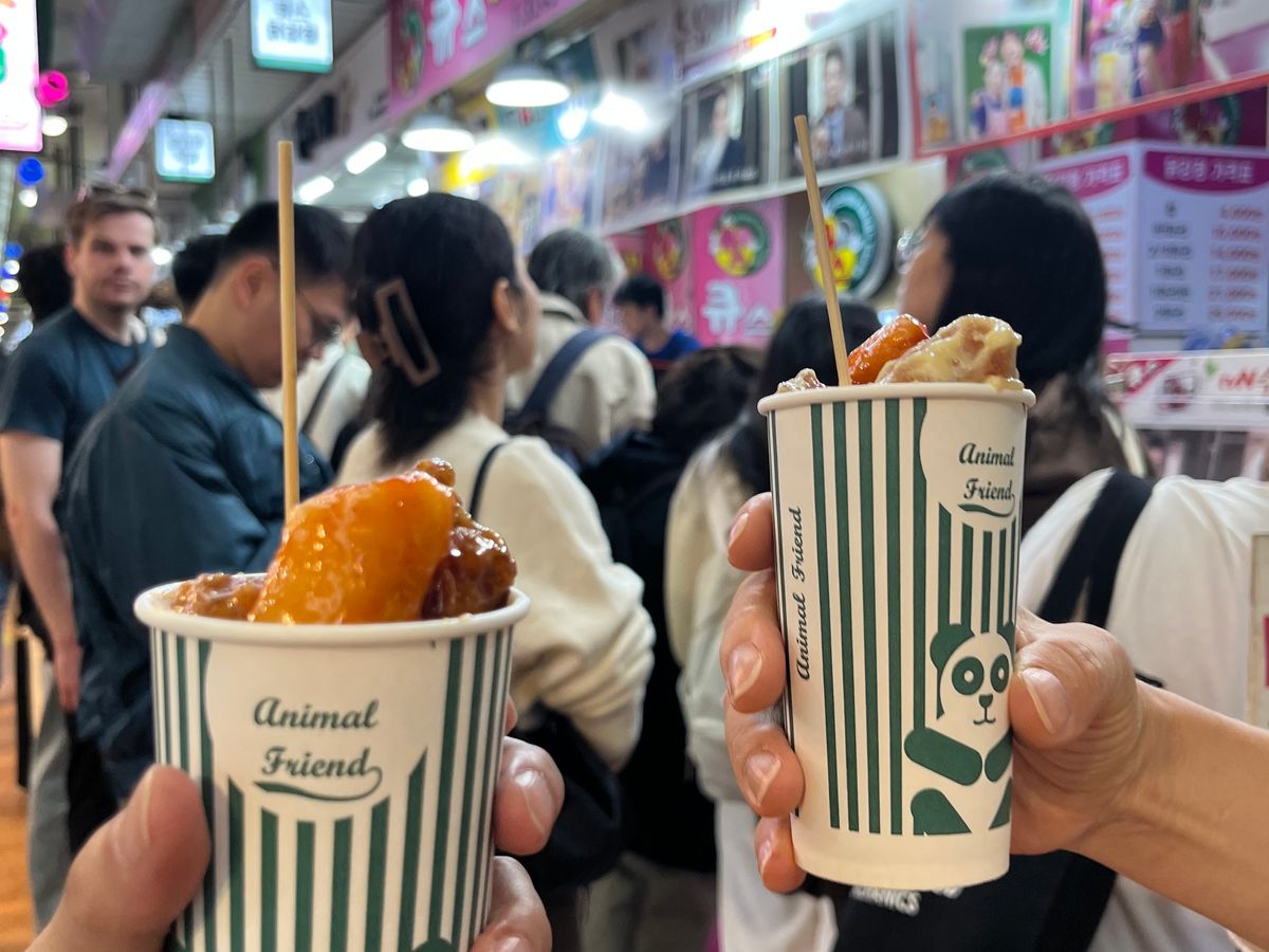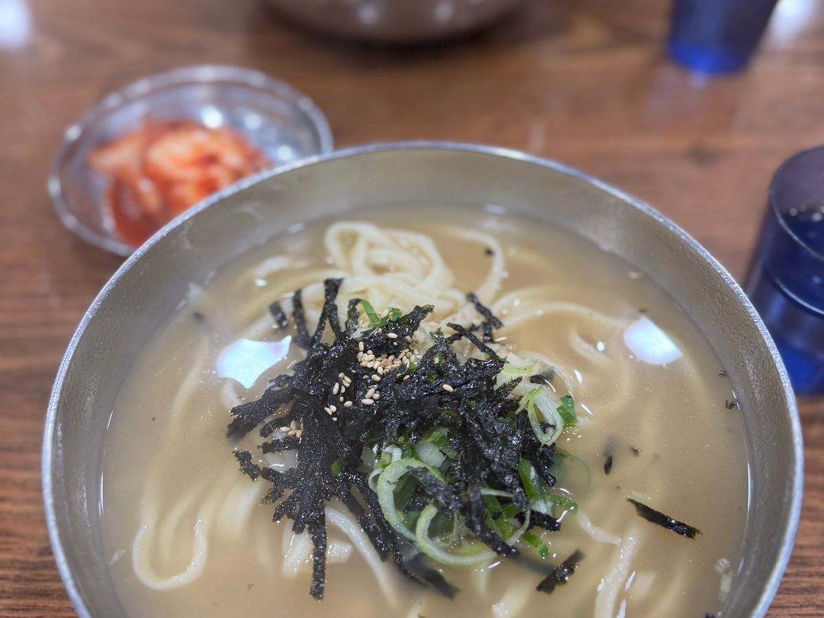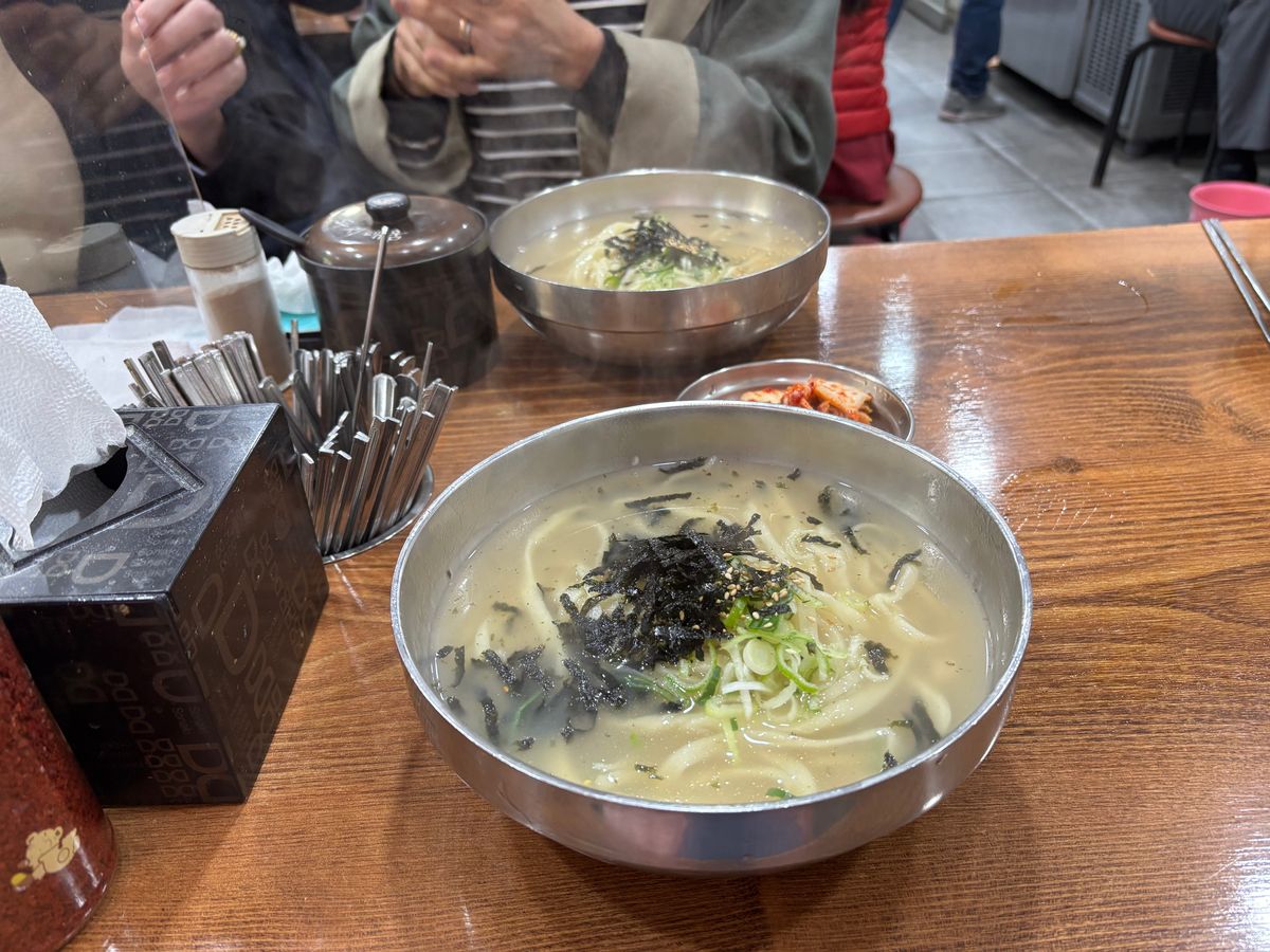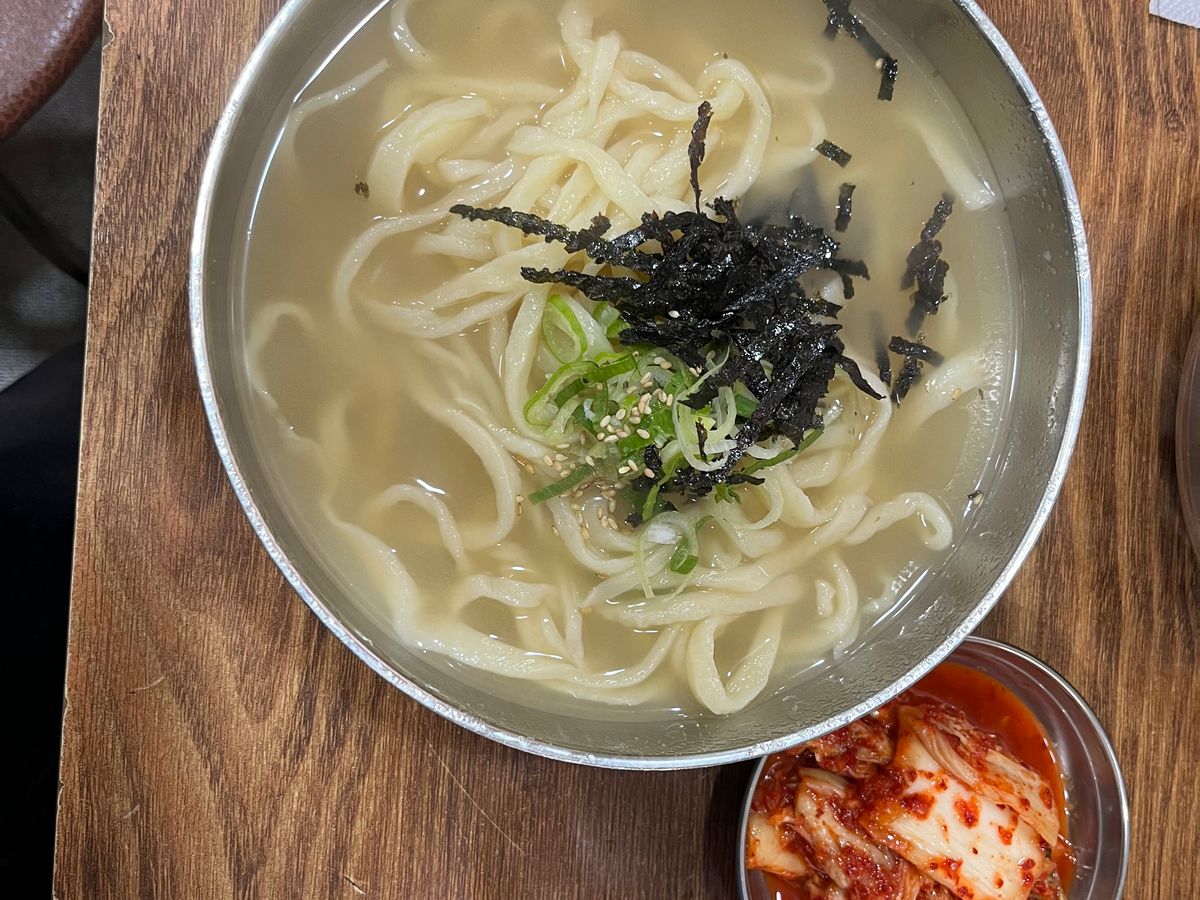 ローカルな雰囲気のお店のカルグクス、とても美味しかったです。おやつのホットクも熱々で最高に美味しかったです。