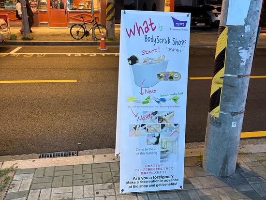 他の口コミにも書かれていましたが、最初の説明は翻訳機能を使って会話をしますが、とても親切で不安一つなく施術してもらいました。店内は清潔感があり、パウダールームもダイソンのドライヤーが用意され、化粧品類も充実してます。垢すりもとても強さを調節してくれ、丁寧に行なってくれました。スーツケースを8時間まで預かってもらうこともできそうです。ホテルに浴槽が無かったので、ゆったりのんびり入浴でき、疲れも取れました。とても満足です。