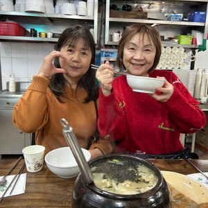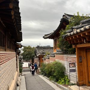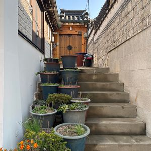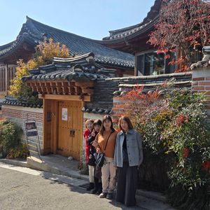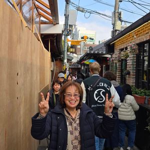 入店して直ぐに餃子スープ、ジャガイモチヂミ等を写真で見せたので、早く提供され、それが凄く美味しくて、キムチも日本の物が好きですが、ここはキムチも美味しかったです。これも、ガイドさんが時間を有効に活用する様に!との配慮です。その後もプランとは違う自分達では行けない、時代劇に出てくる建物が立ち並ぶ所を散策して、ちゃんと説明もしてくれました。本当に素敵な通りで、リノベされて、お店になってたり、生活して居る様でした。金浦空港のオプションの送りも私達の推しの歌を流してくれて、とても親切で楽しい話も日本語に変換して見せてくれるので、言葉に困る事はなかったです。至れり尽せりの最高のガイドさんでした。