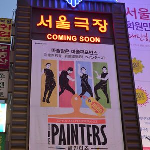 ドローイングショーはこれまで一度も見たことがなかったのですが、予想以上に面白かったです。紙に塗料で絵を描くという単純なアートだけでなく、水に絵を描いたりルービックキューブで絵を描いたりと様々な見せ場があって、公演があっという間。また作品だけでなく、ぺインターさんそのものの顔もダンスもかっこよくて見惚れてしまいました。笑いのツボや間のとり方も抜群です。前方の席に座っていると、客いじりがあって舞台に上げられますので苦手な方はご注意ください。会場はチョンノ3街の地下鉄駅から近くですが、この駅は複数路線が交わっているので、出口を間違えるとかなり歩くことになります。事前に場所を確認し、下手に地下鉄構内を移動するよりは地上を出て歩いてしまったほうが早いと思います。残念なことですが、この公演は中国人の観覧者が非常に多く、マナー的にはとても疑問があります。エスカレーターで追い抜かす、照明が暗い中でも平気でスマホを使う、着信音を消さない、子どもが泣いてもそのまま、大声で怒鳴る人も…。スタッフさんはそういったことに一切注意されないのが残念でした。公演終了後は4階のトイレと1階のトイレしか使えません(途中階のトイレは使用不可となります)。1階トイレは映画館を利用するお客さんも使用されるので、4階を使ったほうがいいかなと思います。