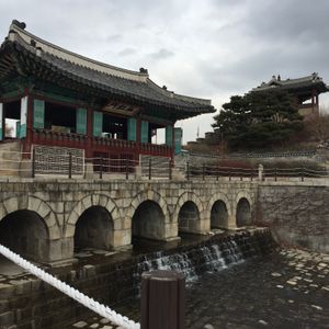 仲の良い友人との二人旅でした。どんよりした天気の中の水原華城、城壁が素晴らしく歴史に思いを寄せました。次いで嵐のような風、雪の舞う中のチャンドックンの見学。ガイドさんの「こんな日は初めてかっに思わず笑ってしまいましたが、世界遺産は素晴らしかったです。チマチョゴリはちょっと恥ずかしかっかのですが、結果満喫してしまいました。ガイドさんも親切で、昼食も美味でした。
