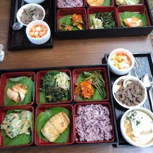 お昼の韓定食では、涼みながら、