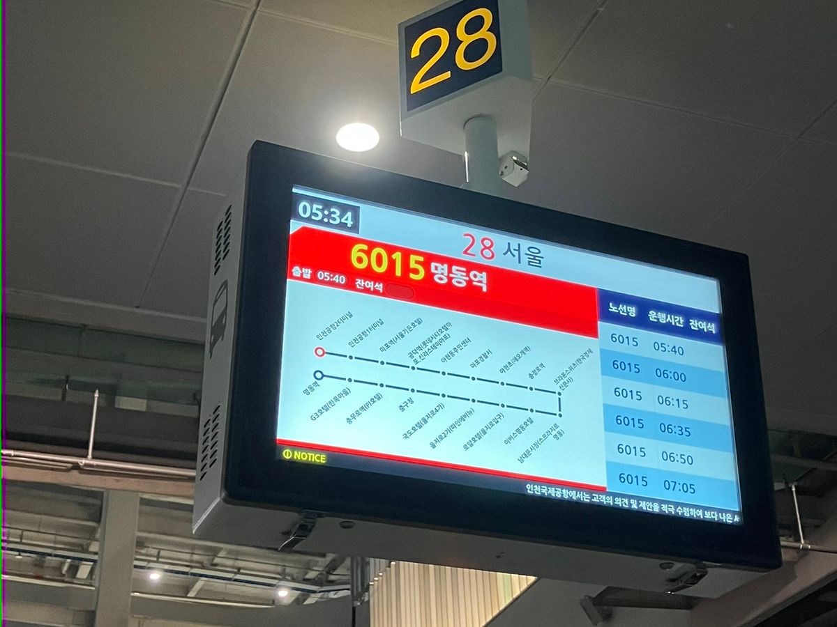 午後3時半頃初のリムジンバスに乗車しましたが夕方の渋滞に巻き込まれたようで明洞まで2時間かかりました。夜のツアーを予約していたので間に合わないかとヒヤヒヤしました。時間に余裕がない人は気をつけて。