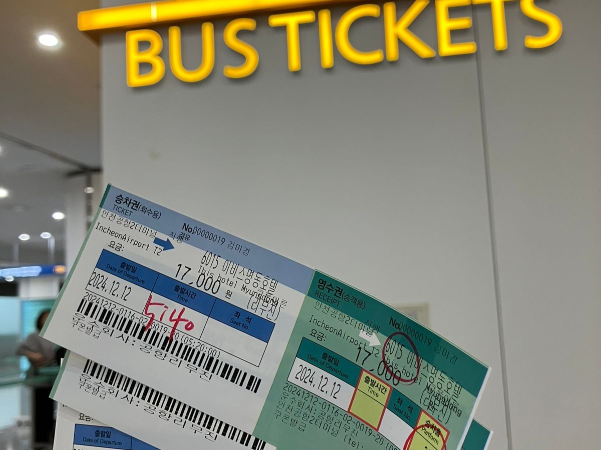 仁川空港の第2ターミナルから明洞まで利用したのですが空港での引き換え場所は写真を元に探したらすぐ分かりましたし、QRコードを見せたら『明洞』と伝えるだけで難しい会話をしなくてもすぐに引き換えが完了しました。帰るときも行きに引き換えた券を見せるだけで簡単に乗車できました。また友達と行ったのですがバス代のやりとりも出発前に日本円でできるので楽でした。
