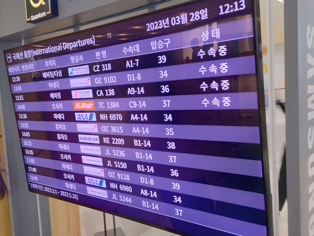 当初、仁川に到着予定だった飛行機が天候の影響で金浦空港に到着。