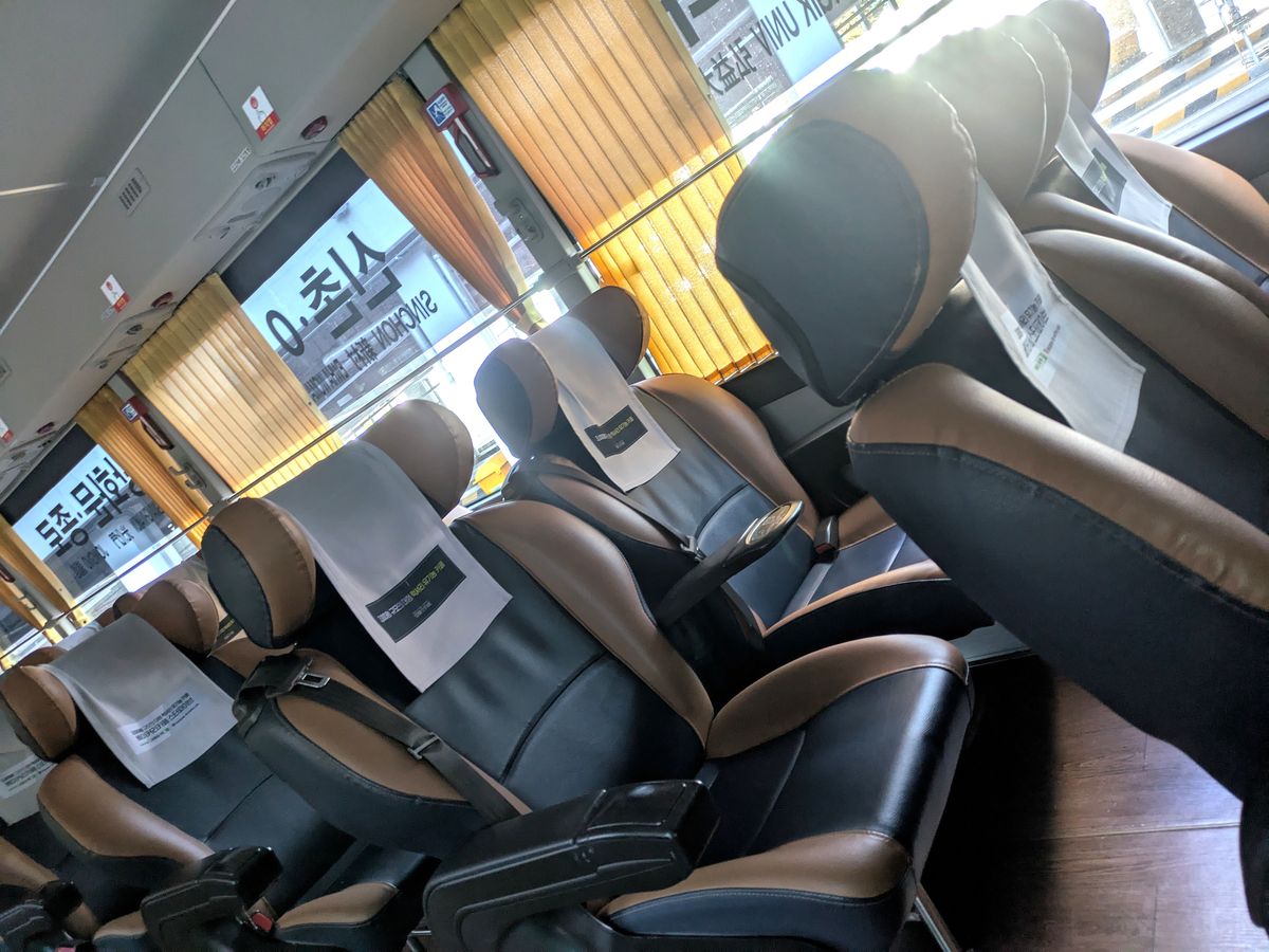 バスのシートが広いですが、車内はそれほど温かくありません。コートを着て乗った方がよいです。スーツケースに入れると、バスの下の荷物置き場に入れるので、コートが取り出せなくなります。