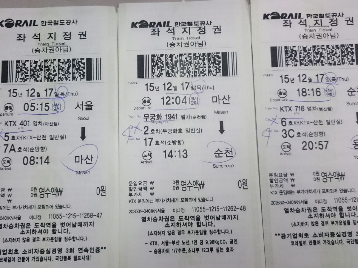 ソウル駅でバウチャーから交換した時には特に何も無かったのですが、木浦で切符を買う時に、初めて見ましたみたいな雰囲気でした。