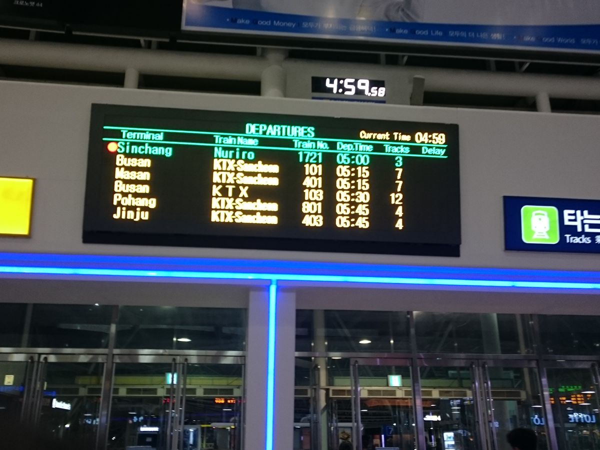 始発での出発だったので、前日に全ての時刻表を調べてすべてのチケットを取れるように日本語のわかる担当者がいるソウル駅で全てを済ませました。