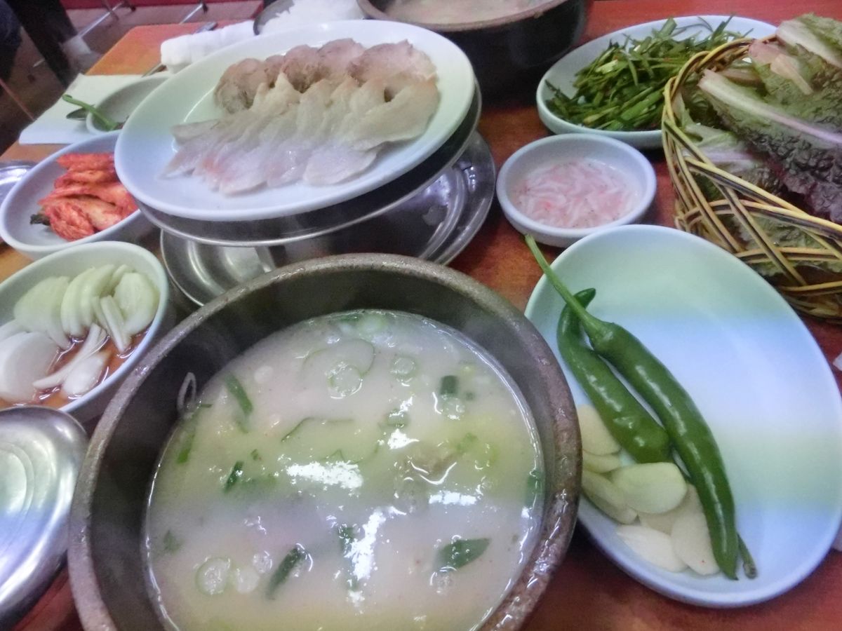 釜山の名物は?デジクッパという豚肉のクッパが有名とのことで、ランチに刺身定食を