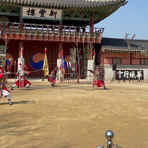 中を案内されるたびに、チャングムの誓いのさまざまなシーンが思い浮かべられます。景福宮での撮影もあると思いますが、ここでは生活感溢れるシーンが撮影されたところです。建物の見応えがあります。最後は、正門前で演舞を見ることができてラッキーでした。